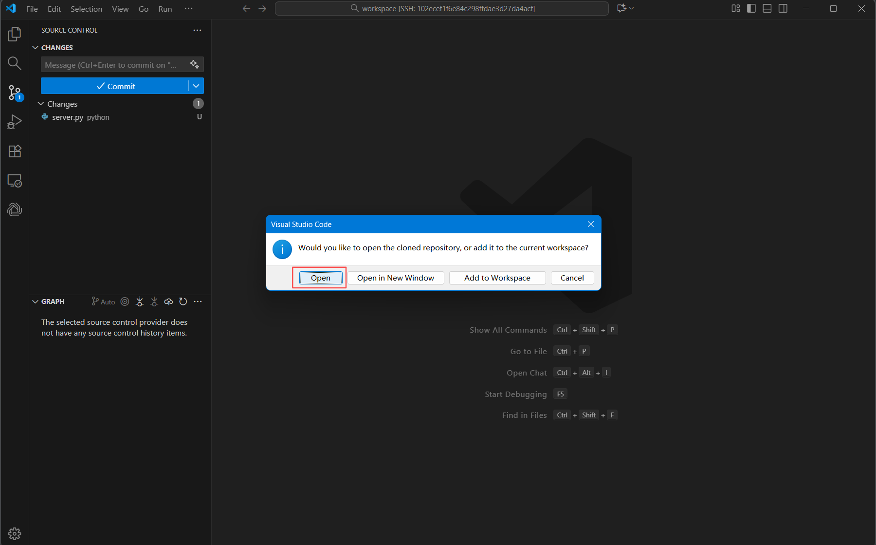 与云开发环境(容器)test的Remote SSH远程连接被成功创建。