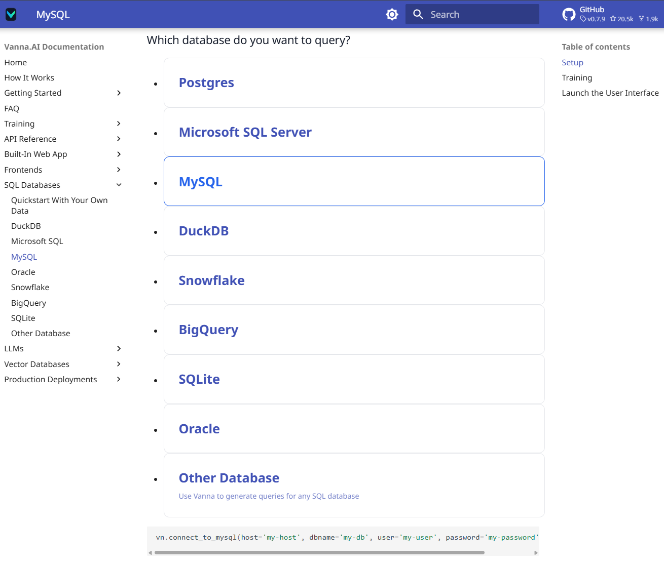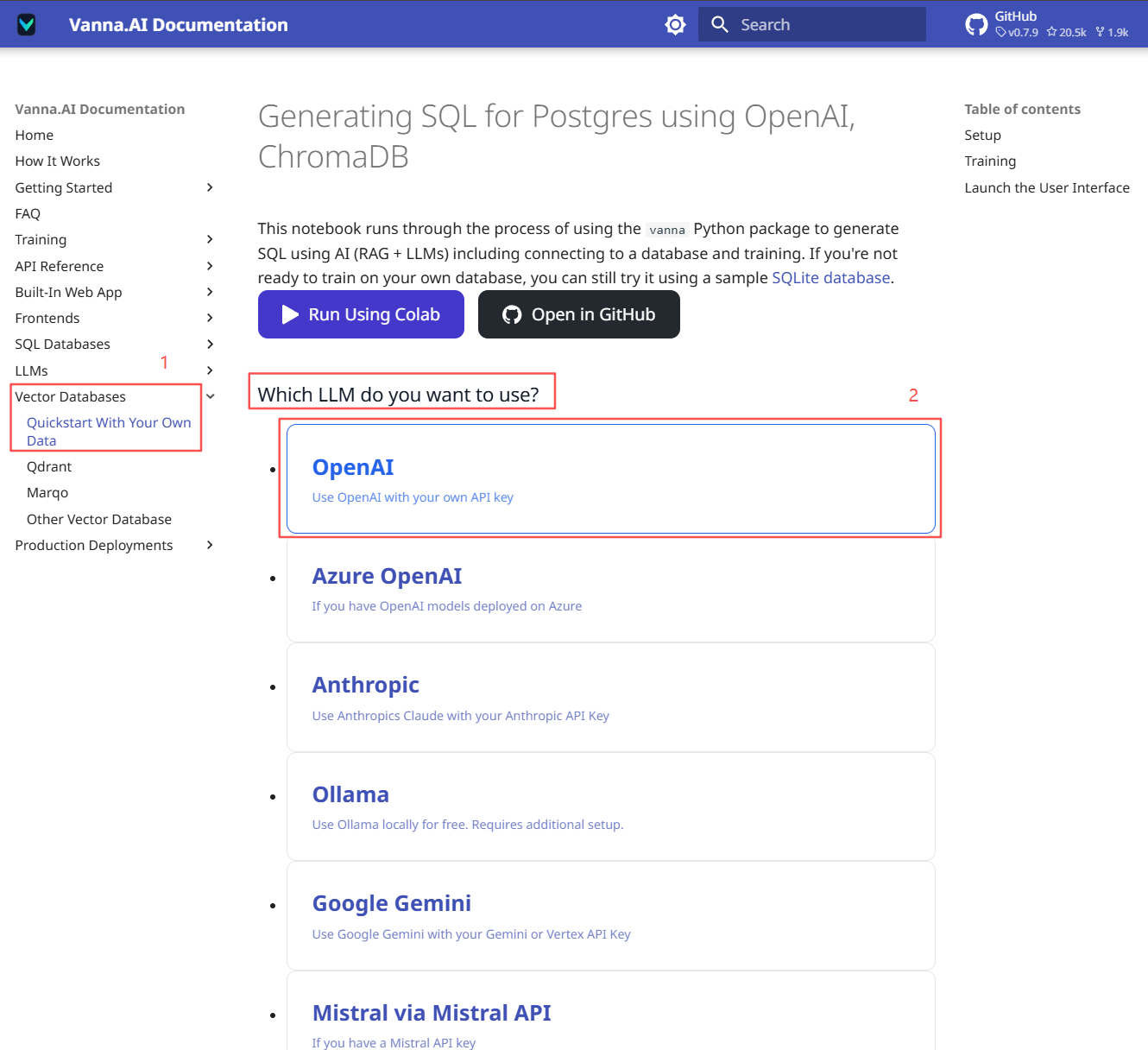 登录官网文档:https://vanna.ai/docs/,通过官方文档选配安装方式。