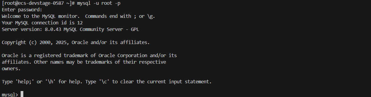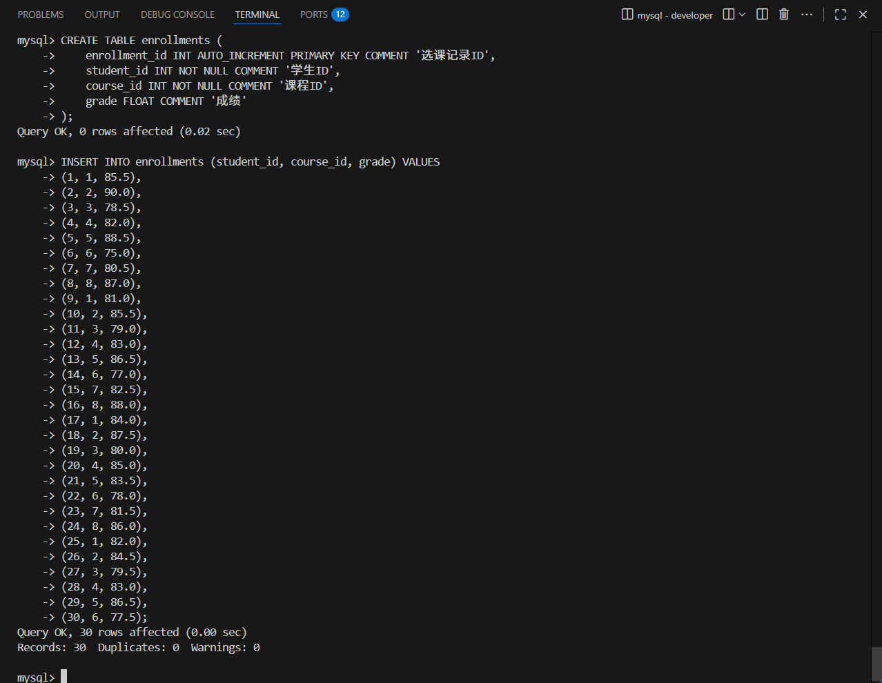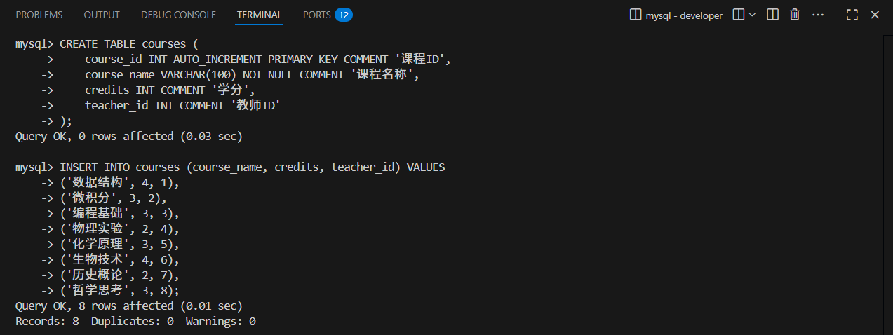VS Code控制台输入如下指令,然后根据提示输入MySQL安装过程中设置的新密码,进入MySQL。