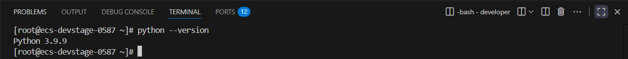 云开发环境虚拟机已为开发者预置了python 3.9.9环境,输入以下指令验证环境: