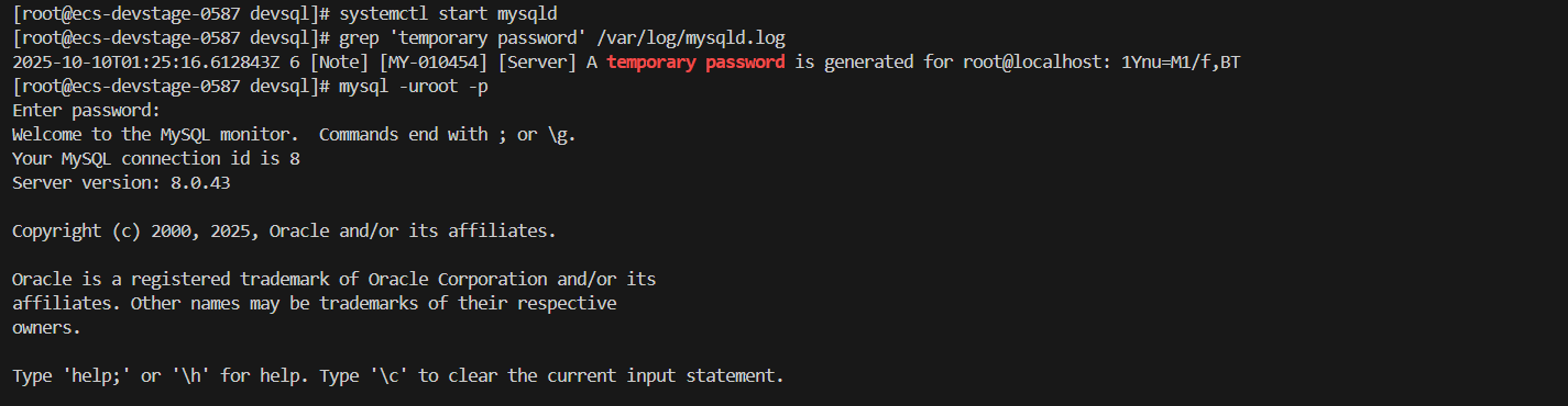 grep 'temporary password' /var/log/mysqld.log #获取初始密码