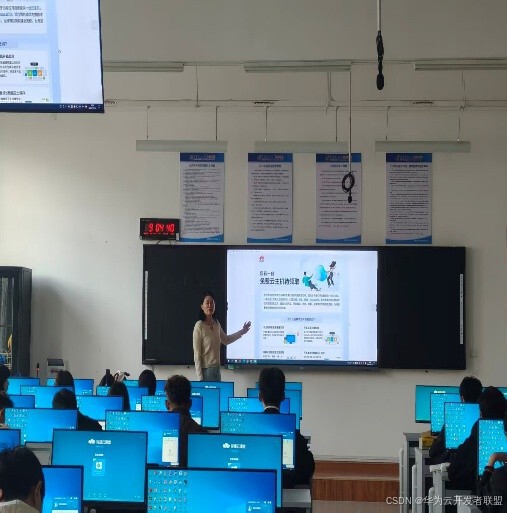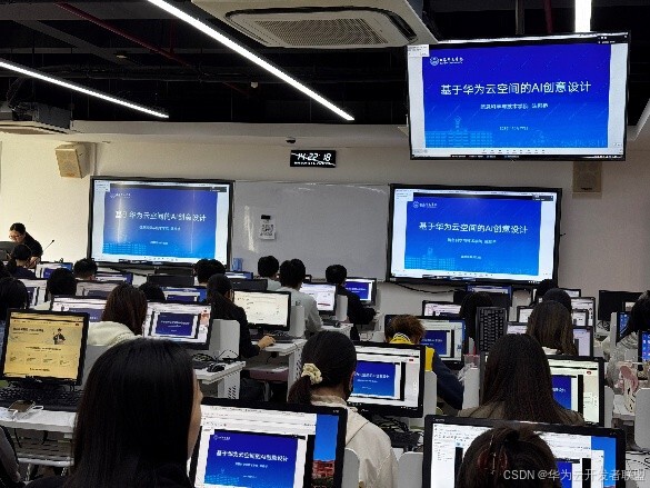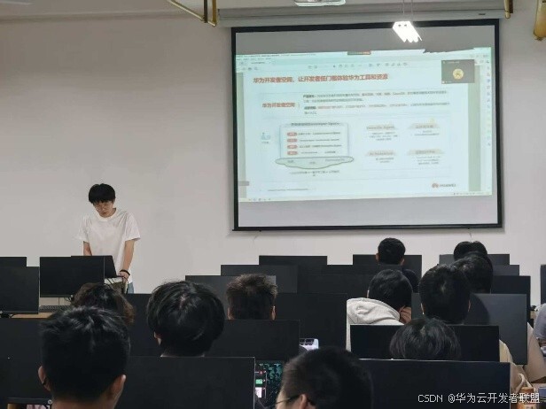 湖北工业大学“百团大战”招新期间, 华为云HCSD校园大使邹鹏坤组织进行了首场深度培训,教室里座无虚席。通过将社团举办的“华为云杯”比赛与开发者空间结合,为同学们做了真实的案例演示,通过投影共享屏幕,演示如何利用华为的云服务器快速部署模型。教室里回响着键盘的敲击声,同学们或独立探索,或通过QQ即时交流协作,真正体验了“云上开发”的高效与便捷。许多同学反馈“第一次感觉自己离企业级开发如此之近”。他们成功利用所学,开始尝试构建自己的智能应用项目。