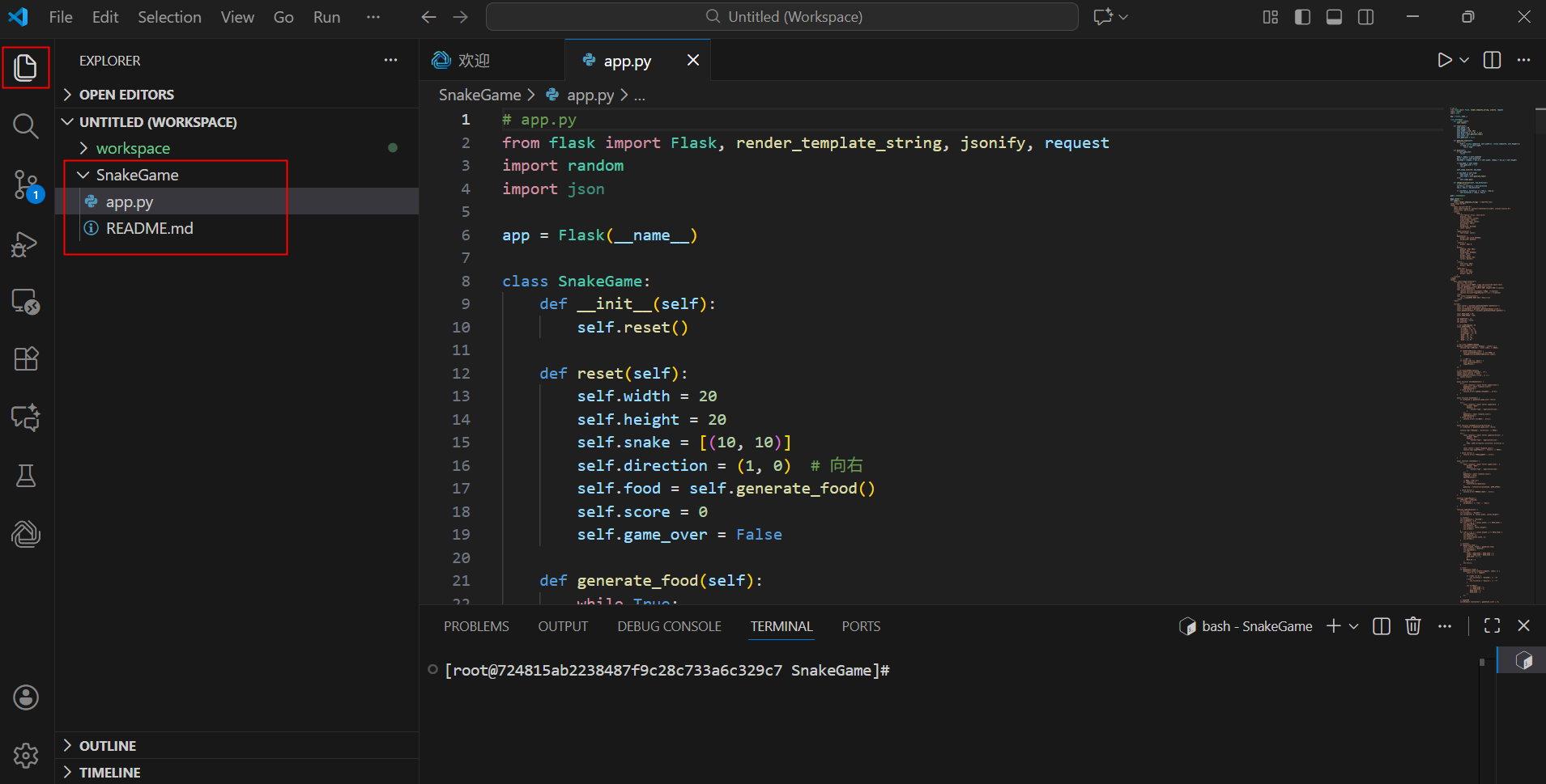 - 在容器中使用VS Code编写并运行应用代码,使用浏览器体验Python小游戏。