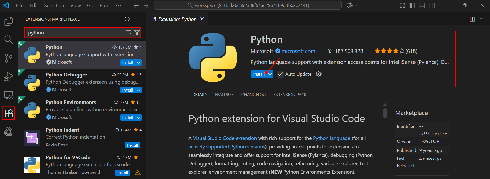 参考案例《华为开发者空间 - 云开发环境(容器)IDE插件远程连接操作指导》中的“二、云开发环境IDE插件远程连接操作指导”的内容,完成“1. 安装插件” ~ “4. 连接”章节步骤。