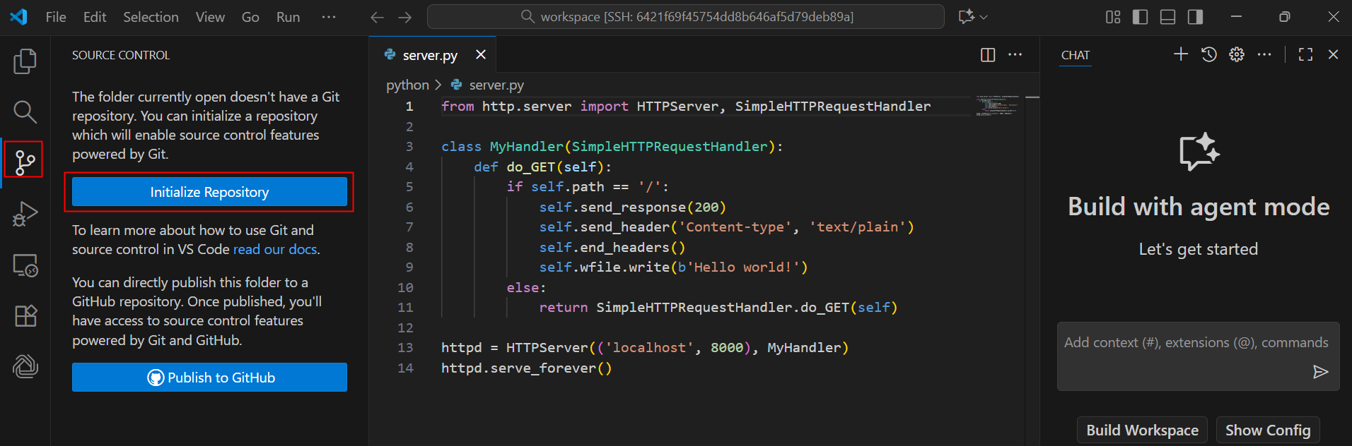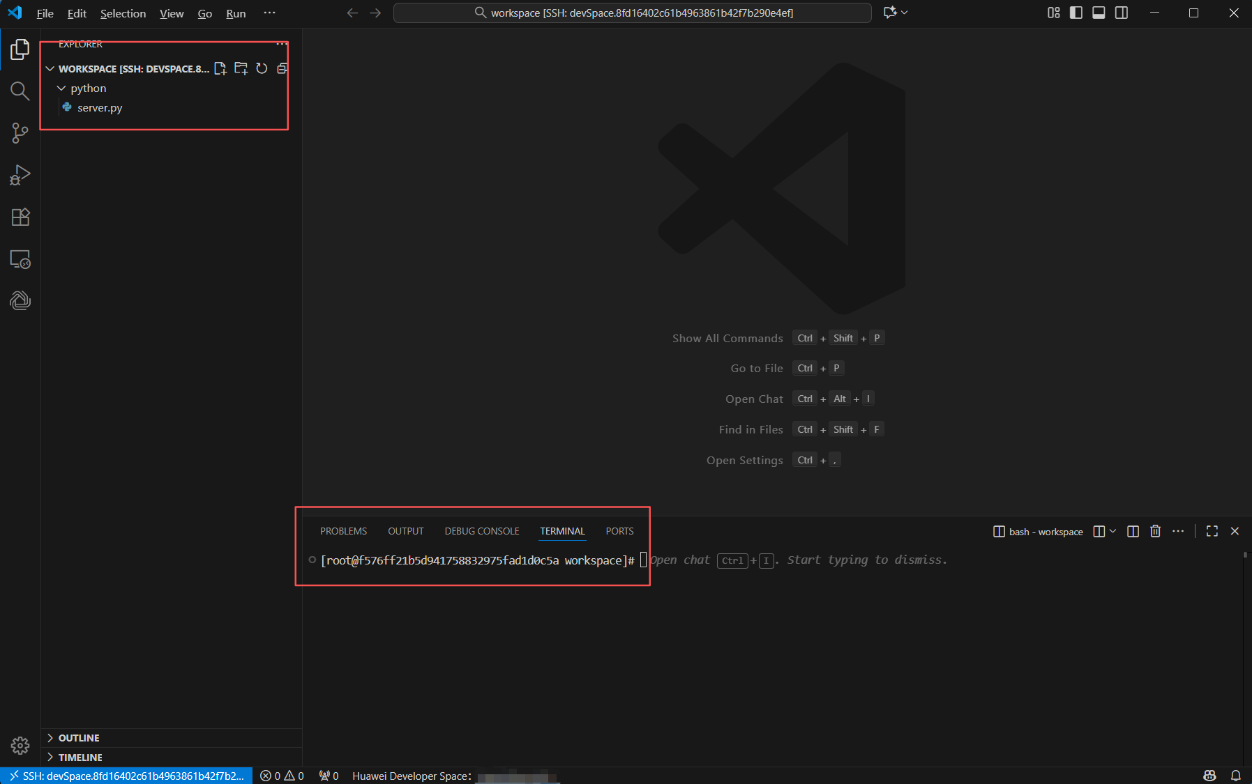 - PC本地通过VS Code安装Huawei Developer Space插件,远程连接云开发环境(容器);