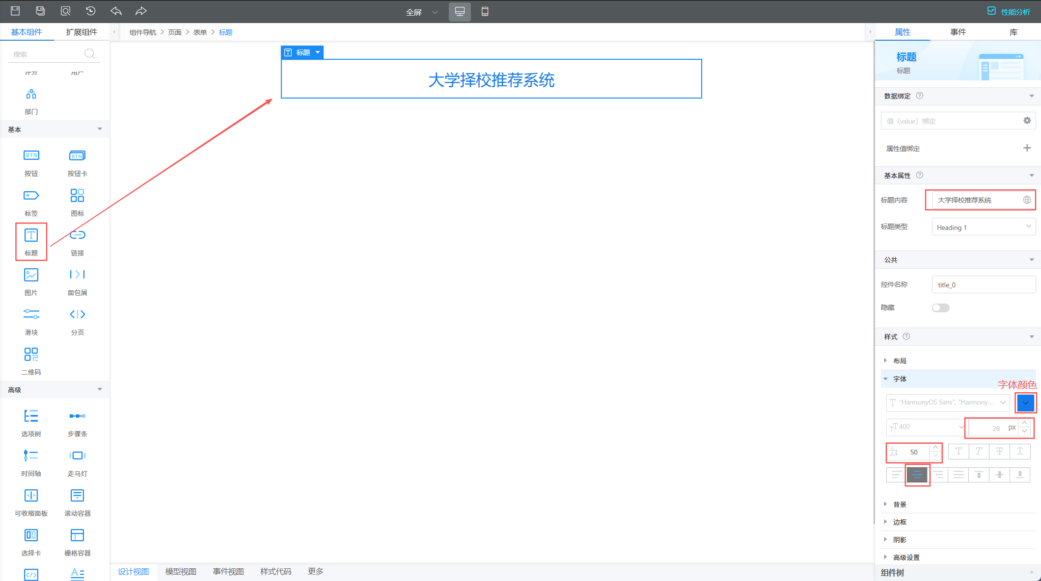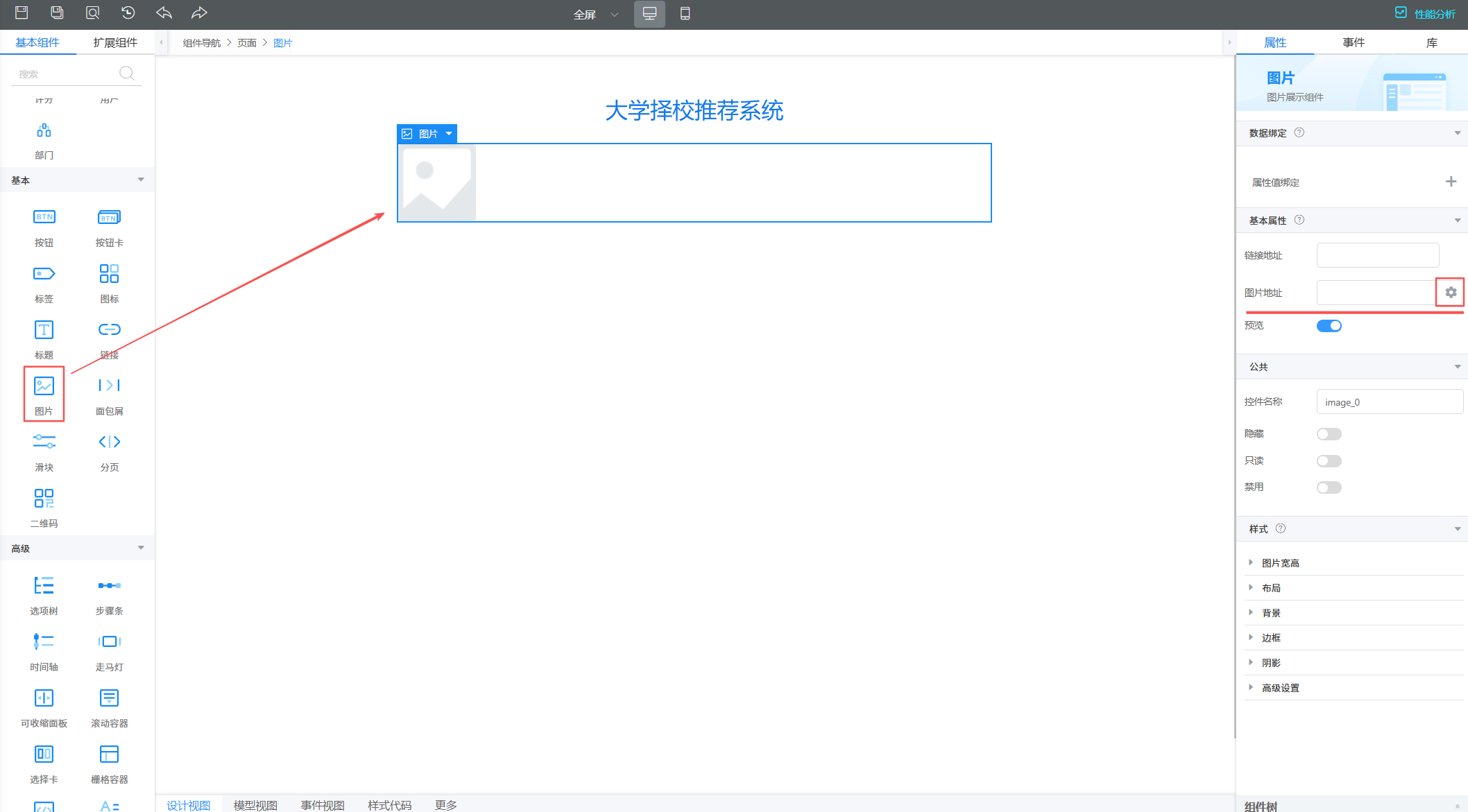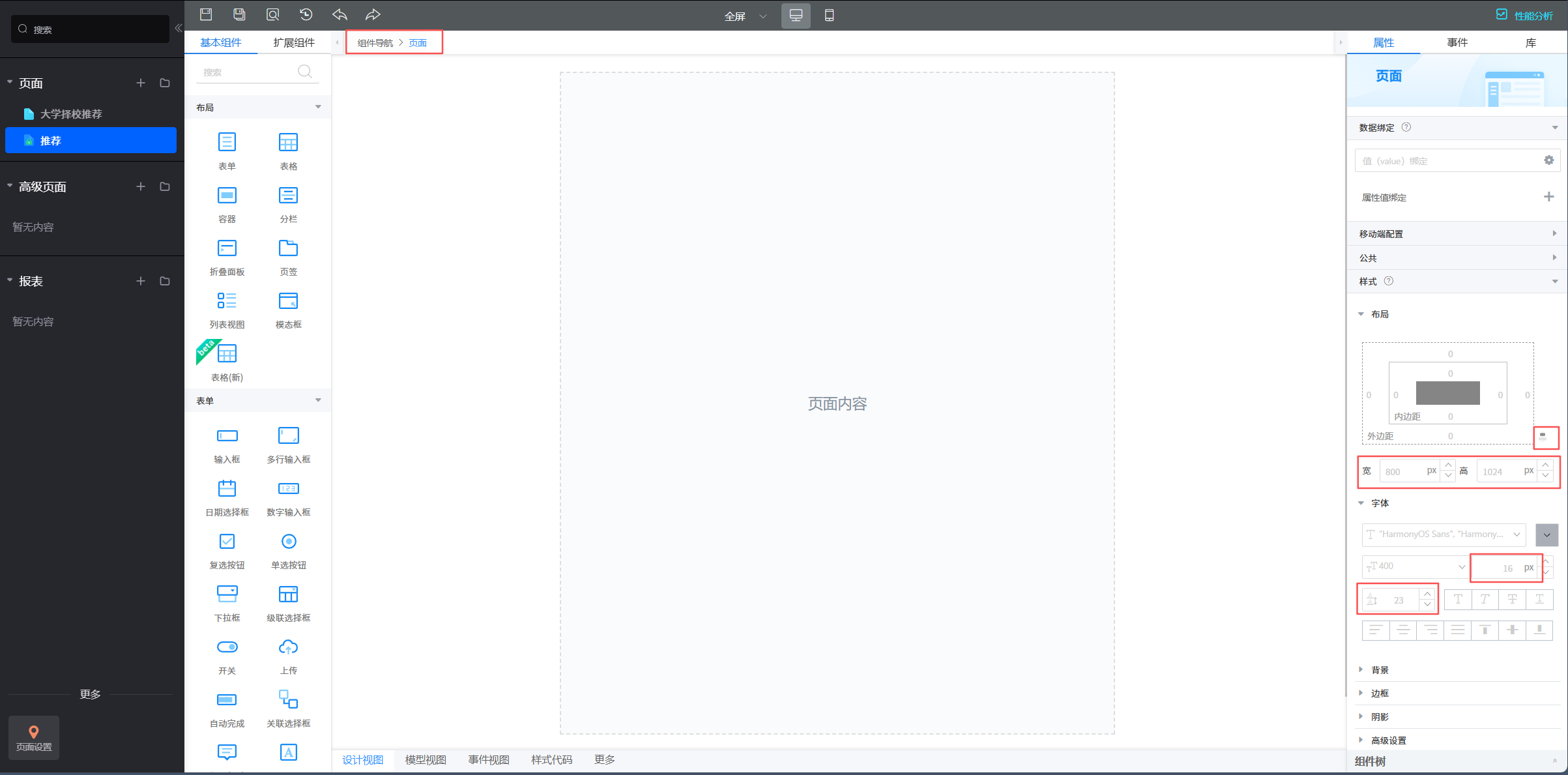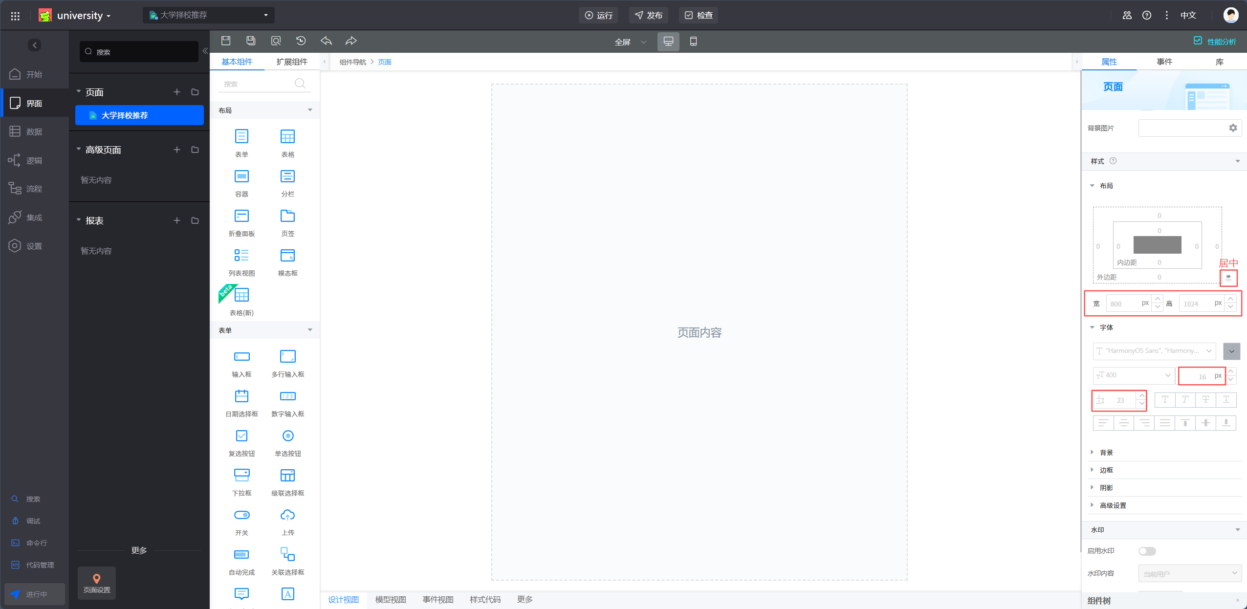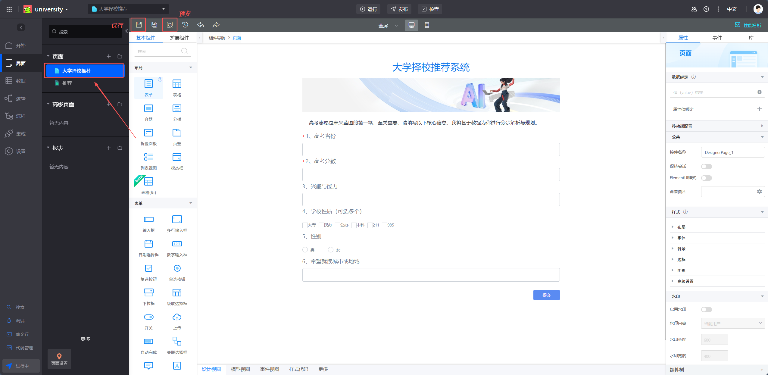 左侧选中页面 > 大学择校推荐,点顶部工具栏保存、预览。