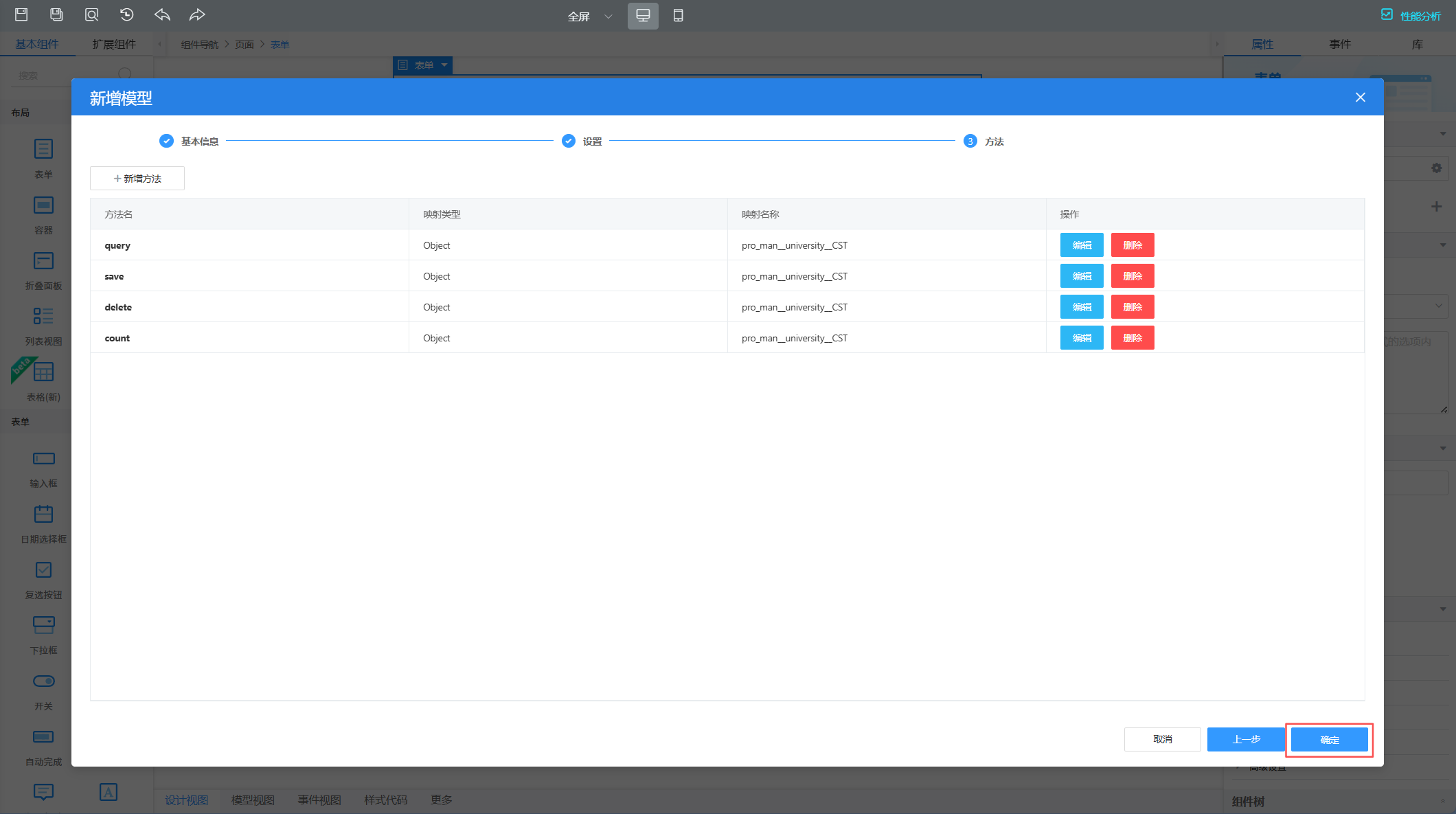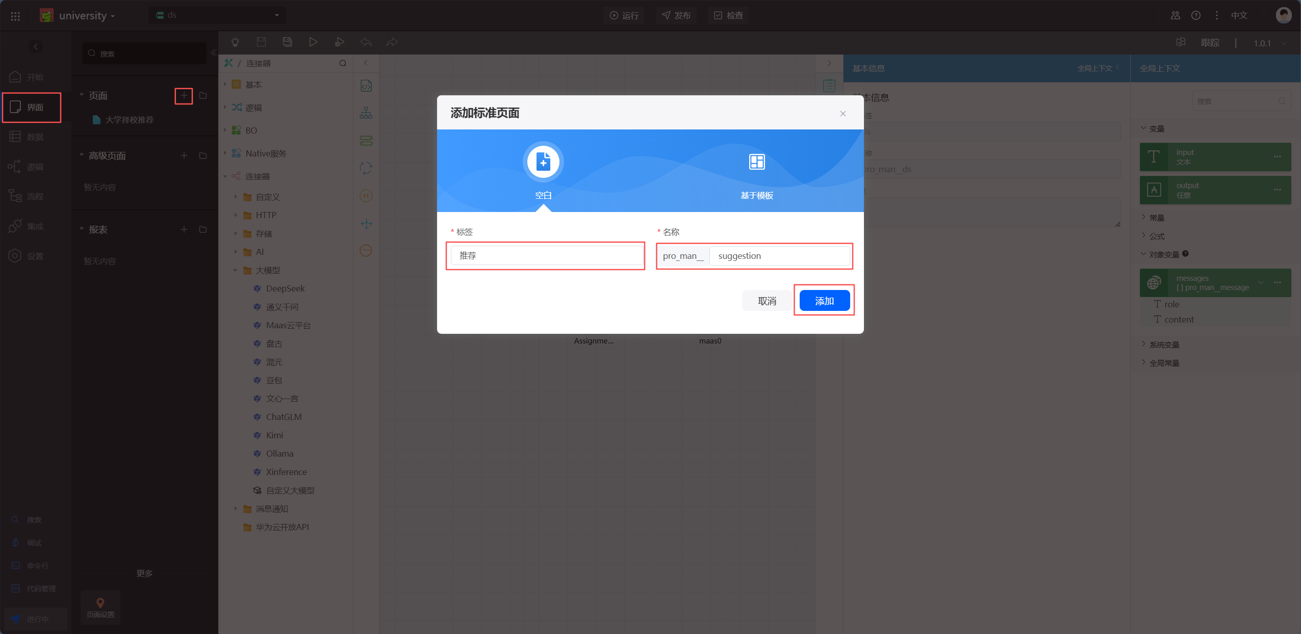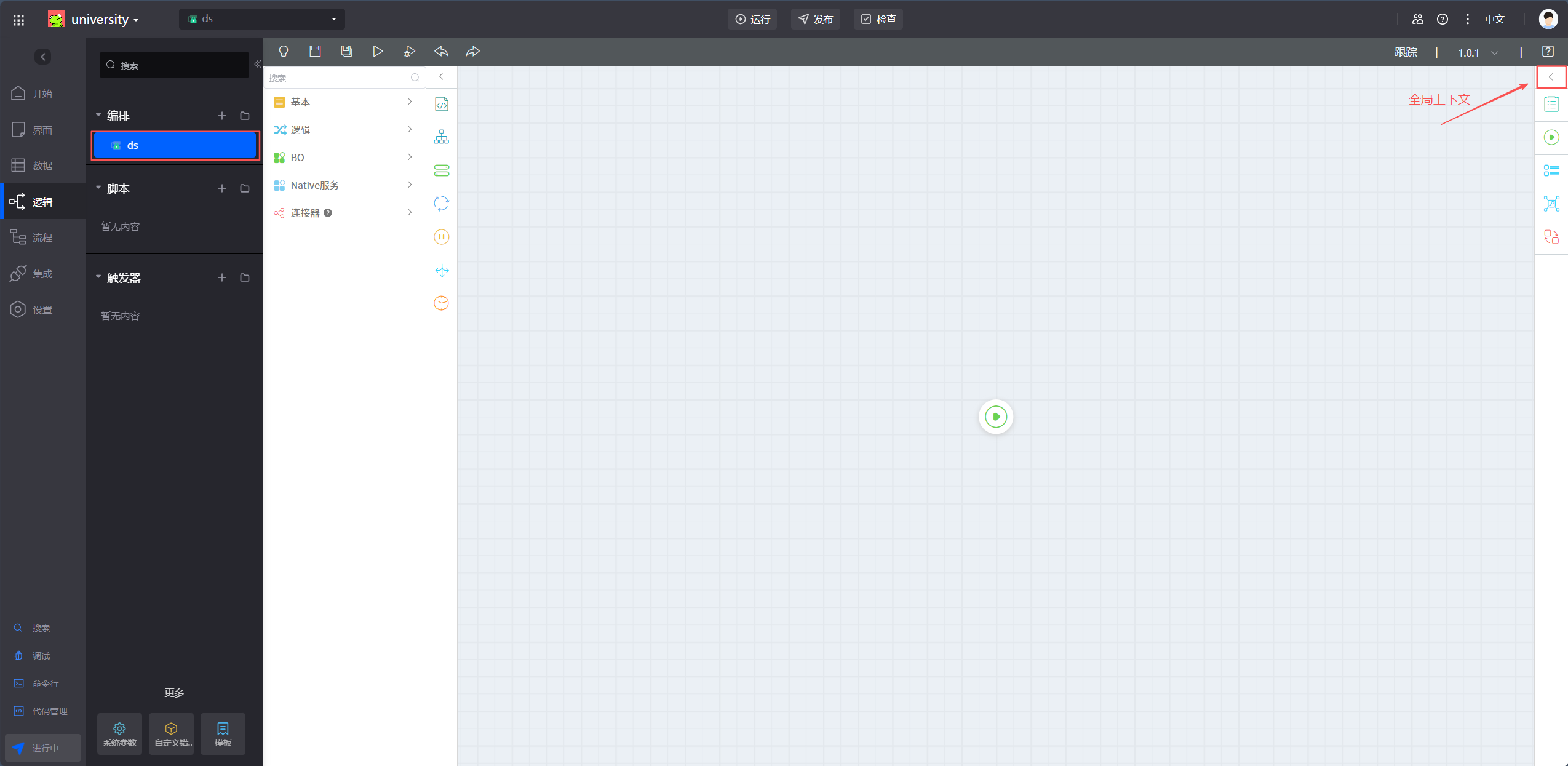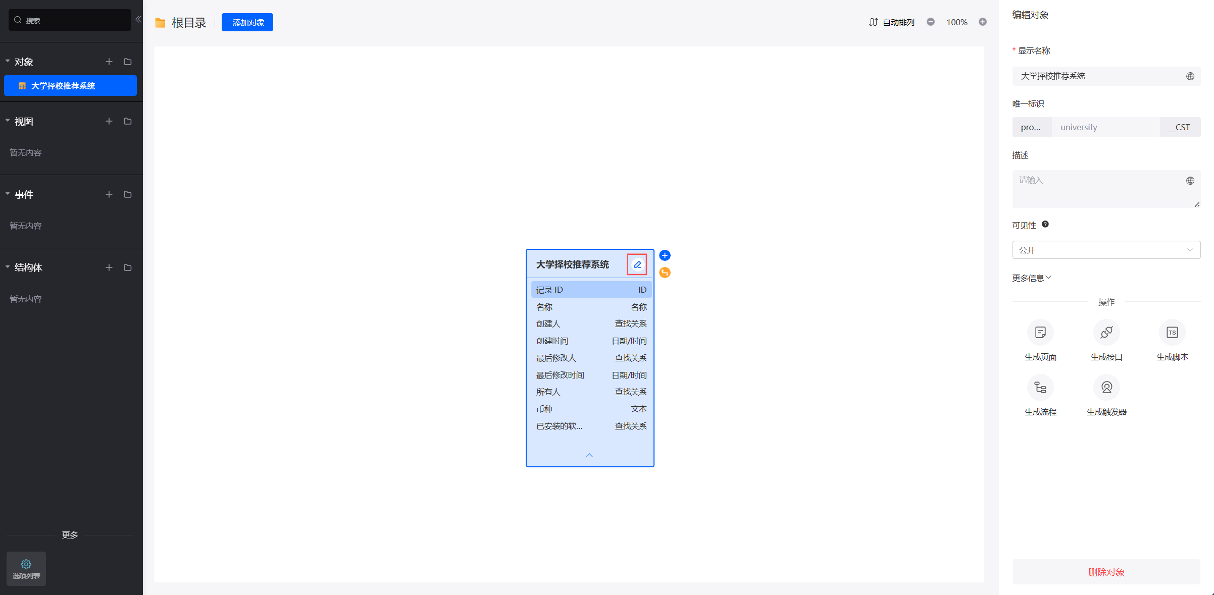 - 点击右下角确认按钮,进入刚才创建的名为university的Astro轻应用配置页面。