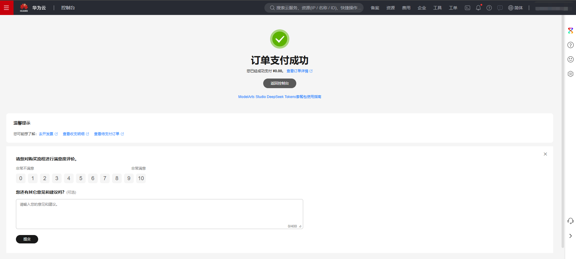 - 购买ModelArts Studio DeepSeek Tokens套餐包