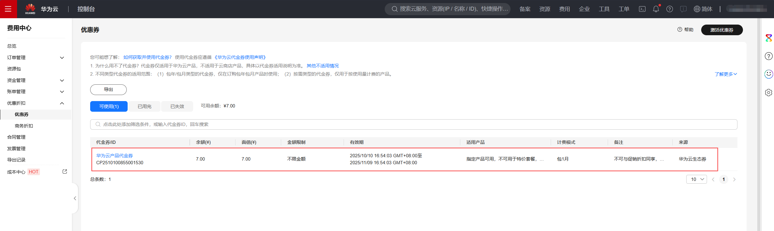 参考案例《基于华为开发者空间-云开发环境(容器)+MaaS实现智语灵犀-AI对话助手》中“二、基础环境与资源准备” > “4. 领取百万免费福利”完成以下内容: