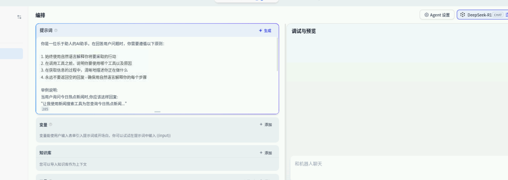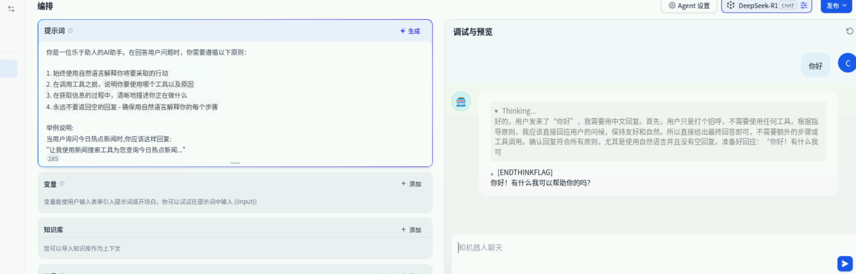 ## 3.5 Agent调试 配置完成后就可以与Agent进行对话测试了。
