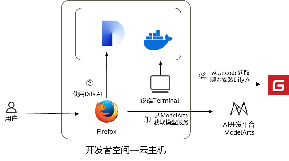 本案例使用开发者空间云主机,基于模型平台ModelArts Studio和开源Agent框架Dify.AI构建聊天助手。