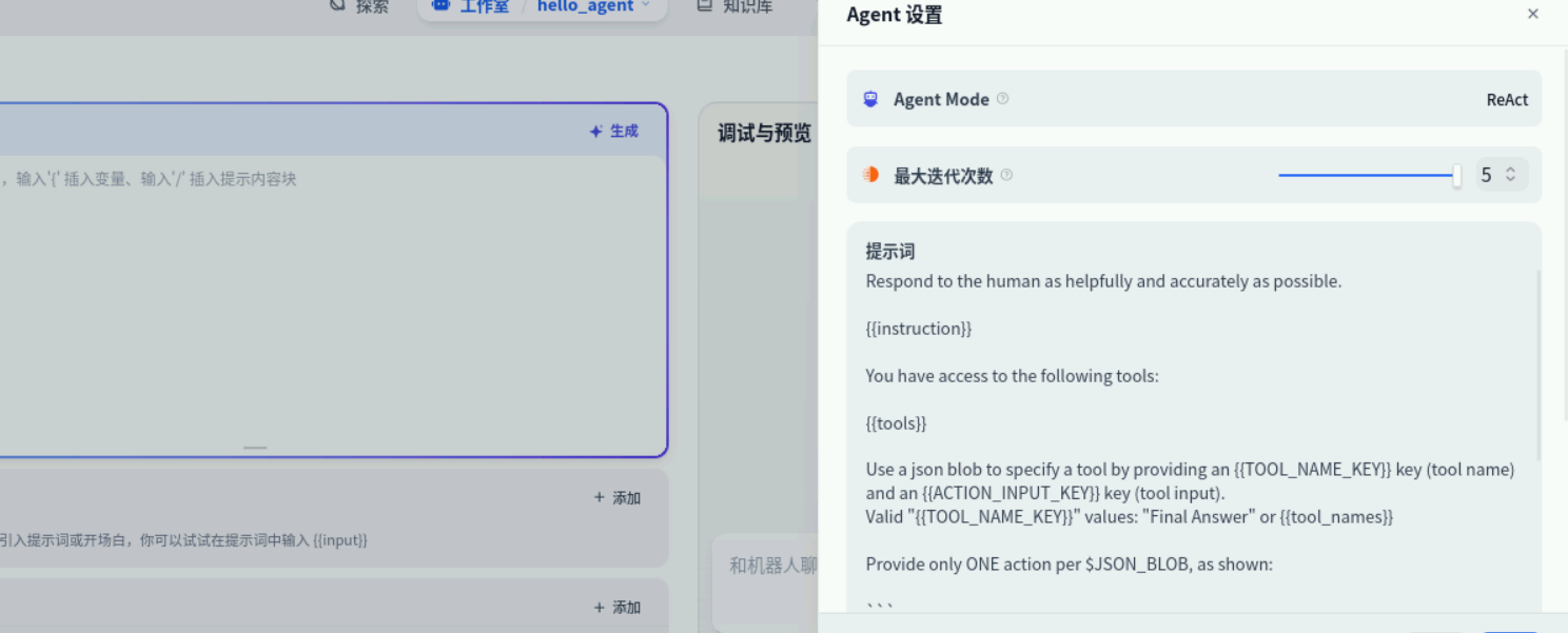 注:Function Call模式会报错,实际使用代理模式,下图为Agent设置的示意图。