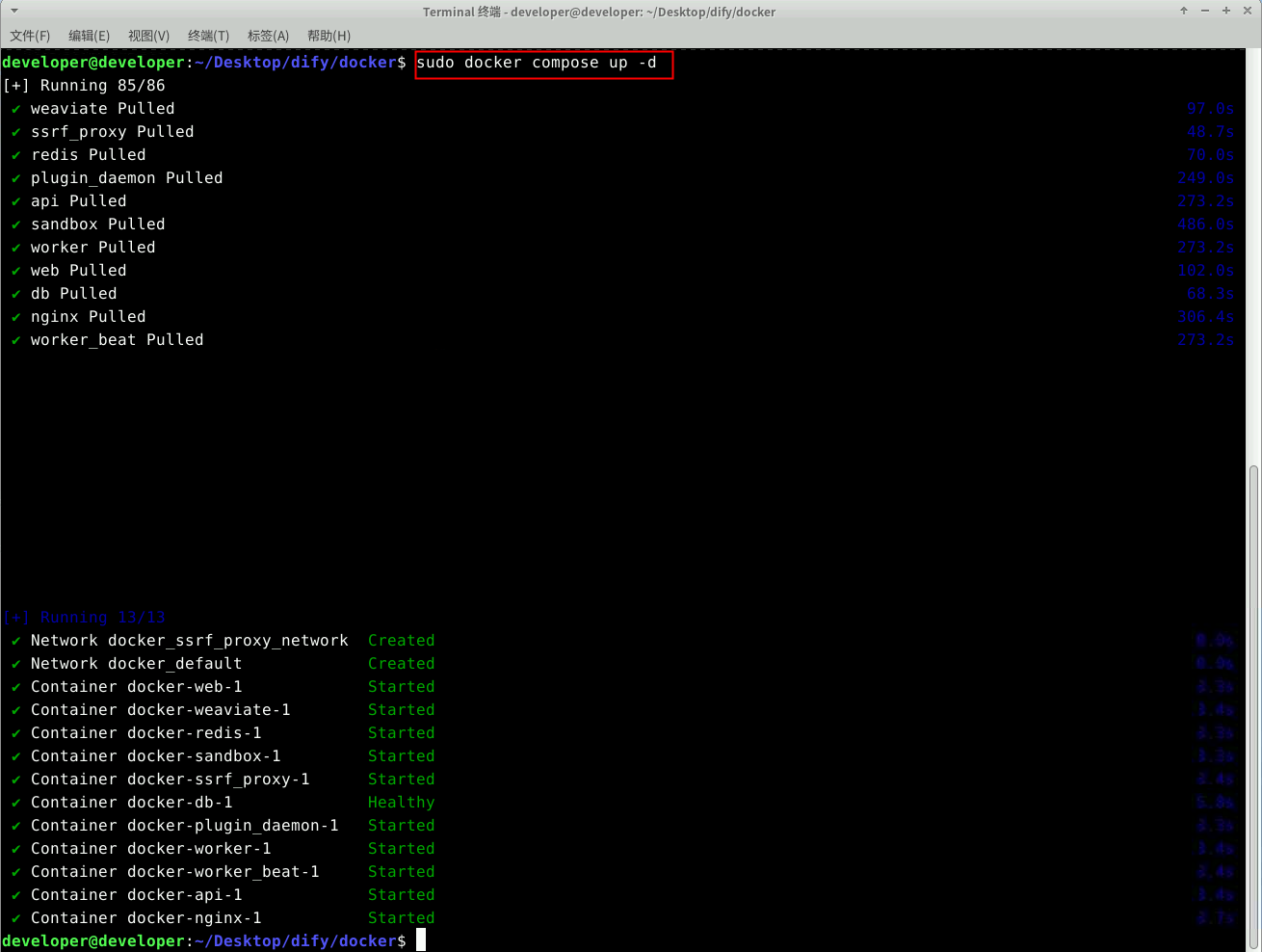 进入dify/docker目录下,复制.env.example文件并将其重命名为.env