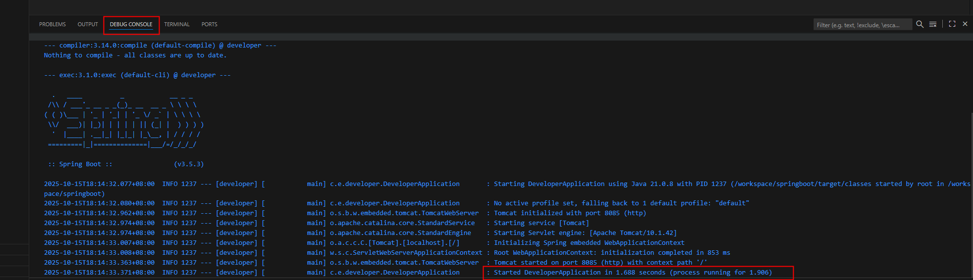DeveloperApplication.java:主启动类,由于我们采用的是Java容器,主启动类已经默认内嵌,因此,不需要再做变更,直接采用原有启动类即可