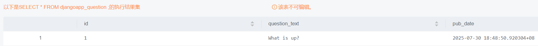 执行operate_question.py文件,可看到Question数据表中新增一条记录:
