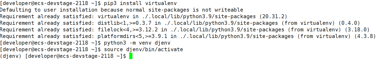 环境激活后,用户名前会有(myenv)字样,如上图所示。