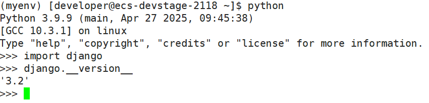 注:安装django3.2版本,因为默认安装是django4.2.23,对PG内核版本要求至少在pg12以上,但GaussDB的pg内核是9.204,不满足django4.2.23需求。