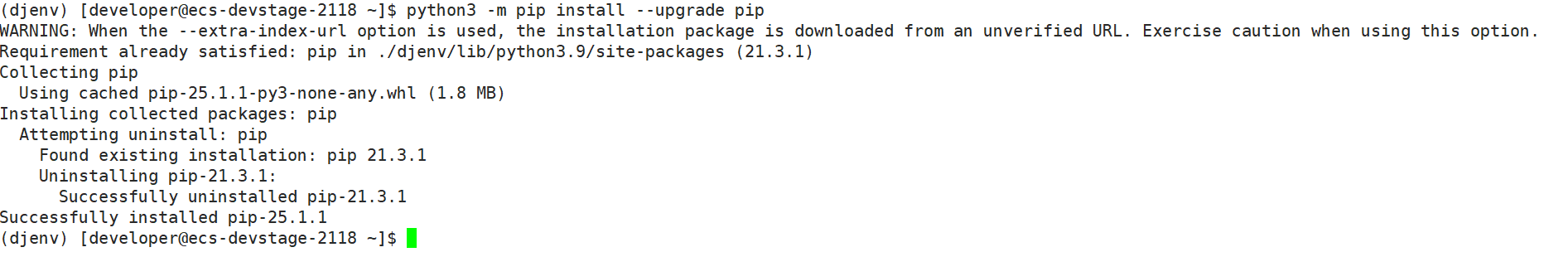 安装之前,需要更新下pip。