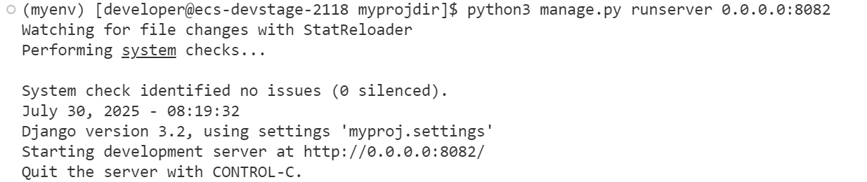 python3 manage.py runserver 0.0.0.0:8082