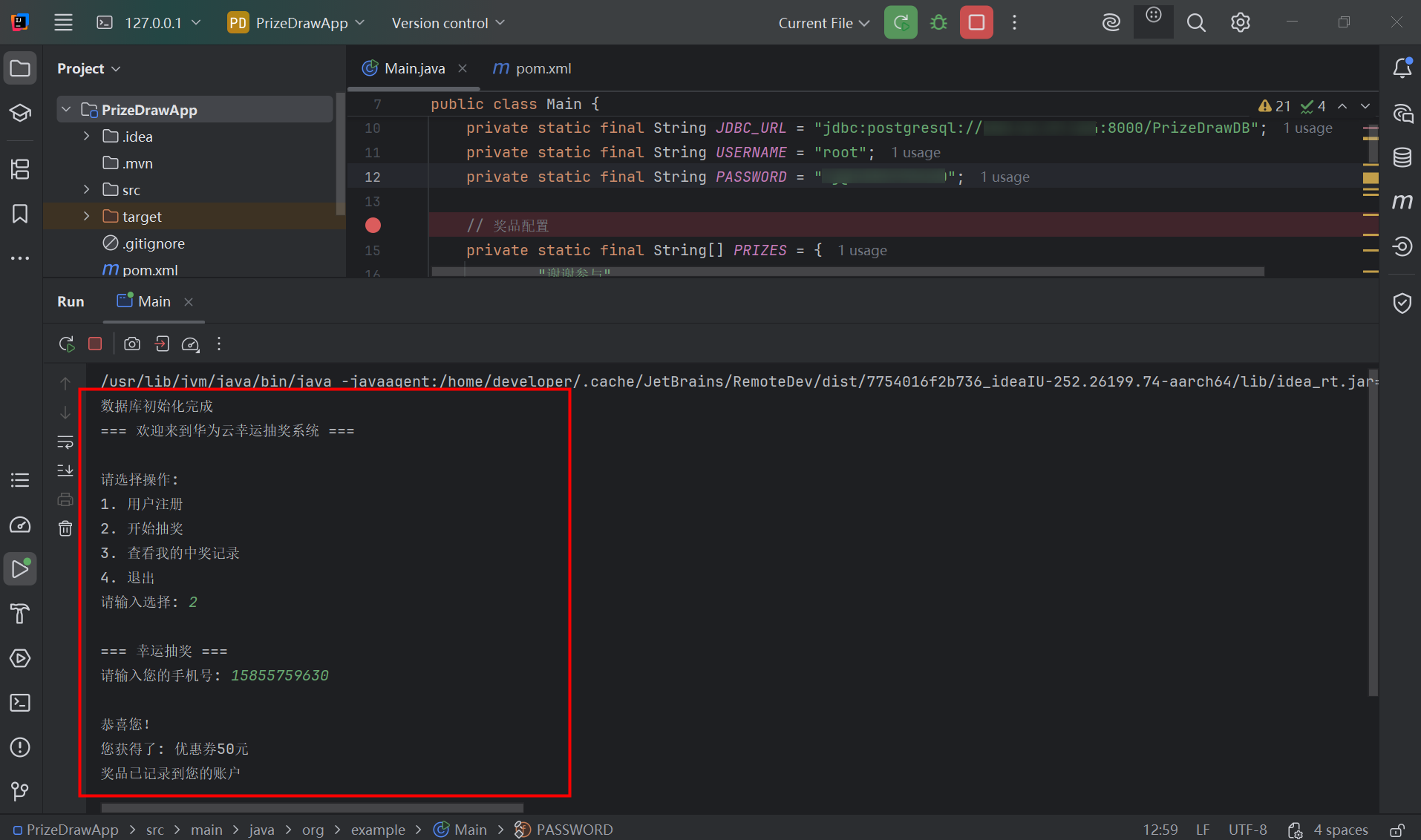 本案例通过本地IDEA连接华为云开发环境,通过本地的IDEA进行远程编程并连接GaussDB数据库来构建抽奖小程序应用。