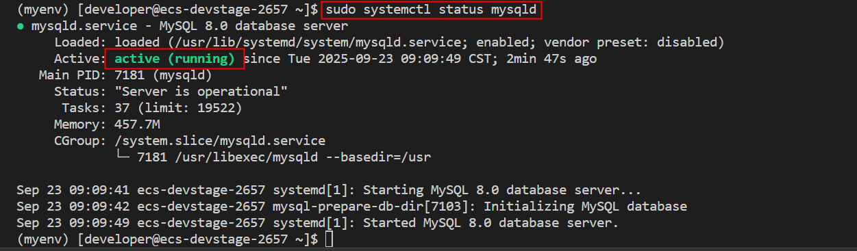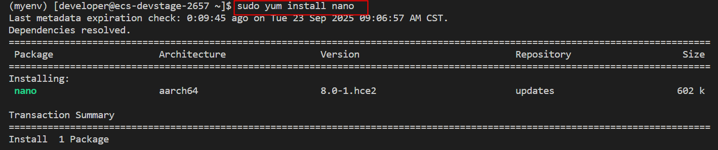 环境激活后,用户名前会有(myenv)字样,如上图所示。