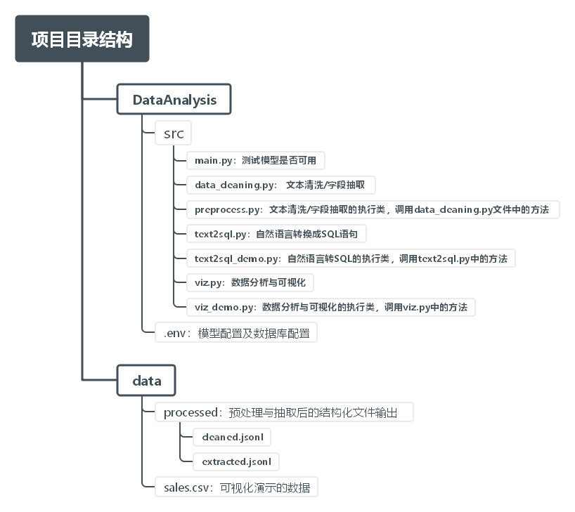 我们下一步就可以开始全链路高效数据分析工作流搭建了,开始之前,我们首先看下整个项目的目录结构: