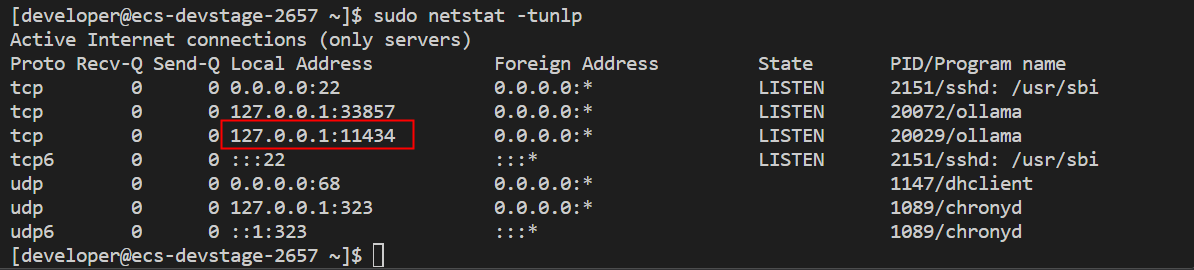 通过以下命令,可以查看olloama开放的本地端口: