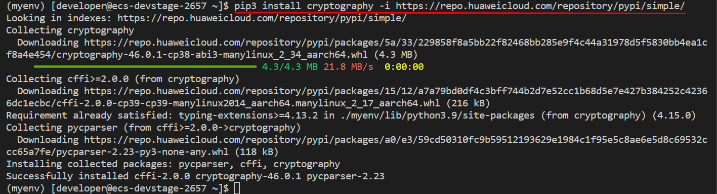 pip3 install cryptography -i https://repo.huaweicloud.com/repository/pypi/simple/