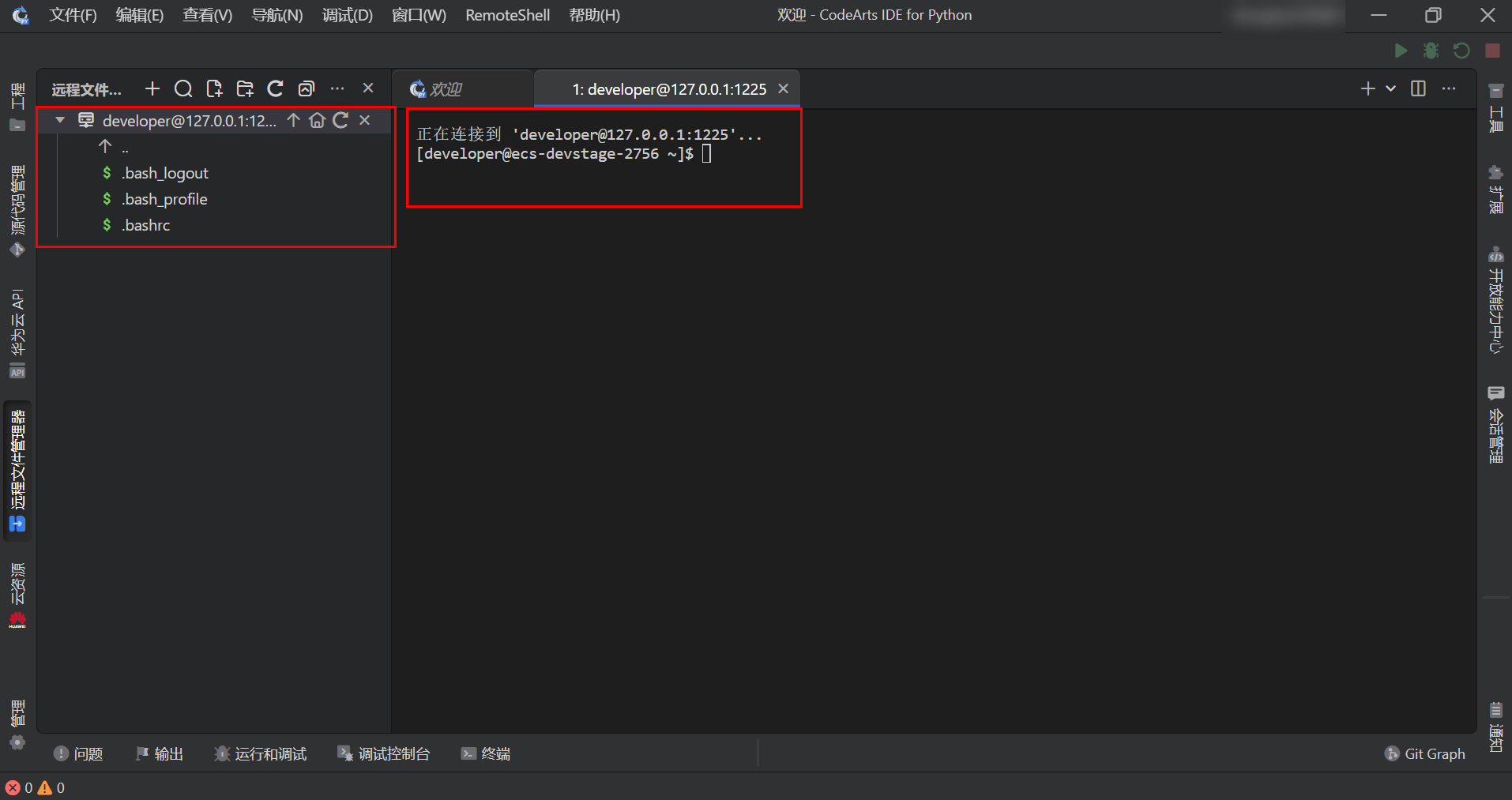 本案例中,使用华为云《本地CodeArts IDE基于华为开发者空间云开发环境完成小游戏开发》的“三.本地IDE直连云开发环境完成上传下载”章节完成本地IDE连接远程开发环境。
