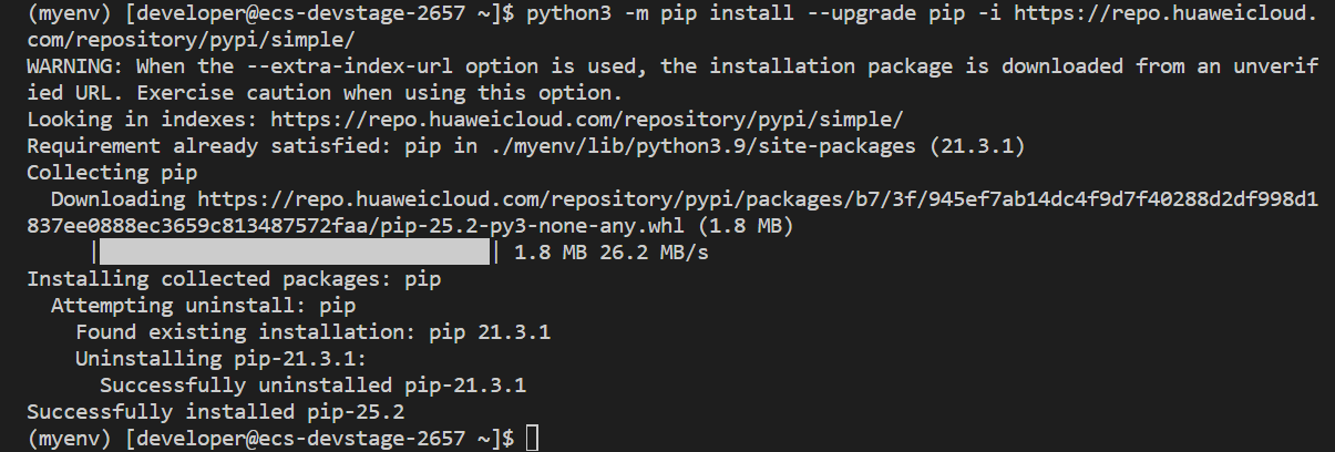 python3 -m pip install --upgrade pip -i https://repo.huaweicloud.com/repository/pypi/simple/