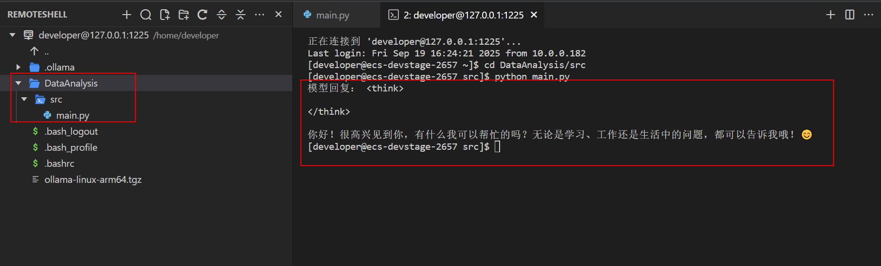 如何能获取到大模型输出,说明我们之前的过程都没有问题: