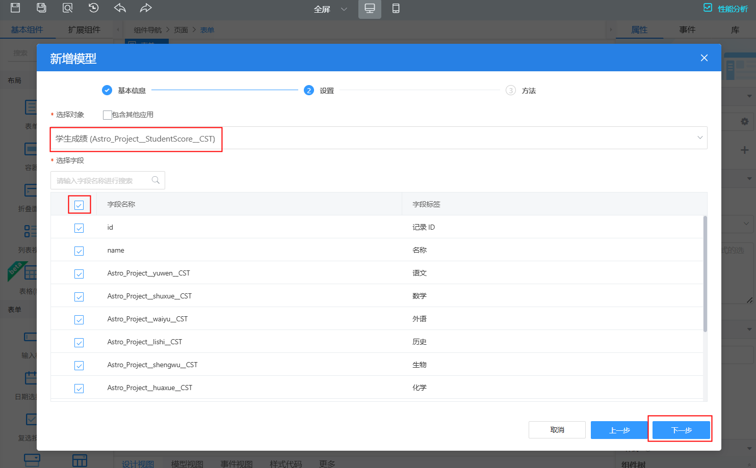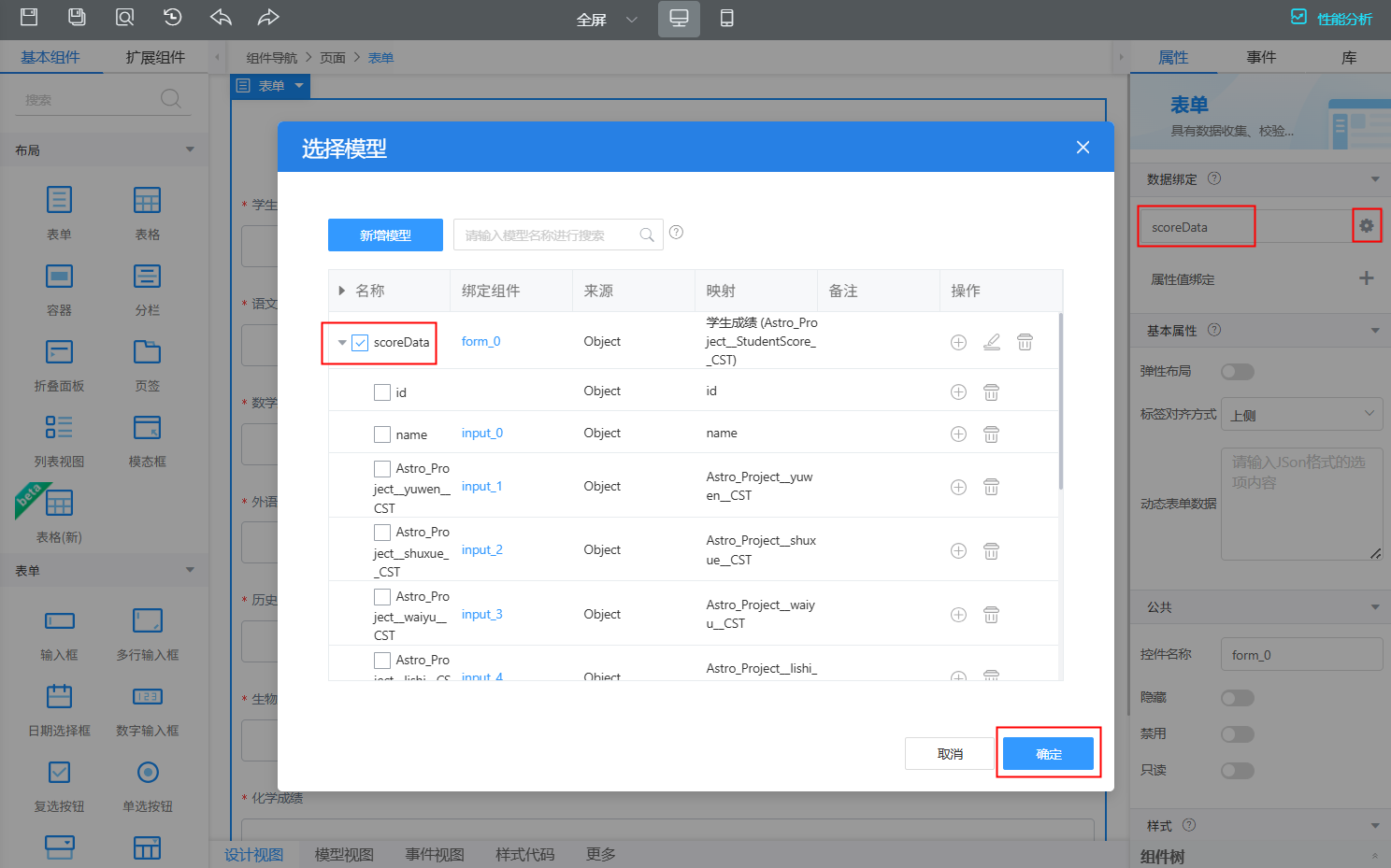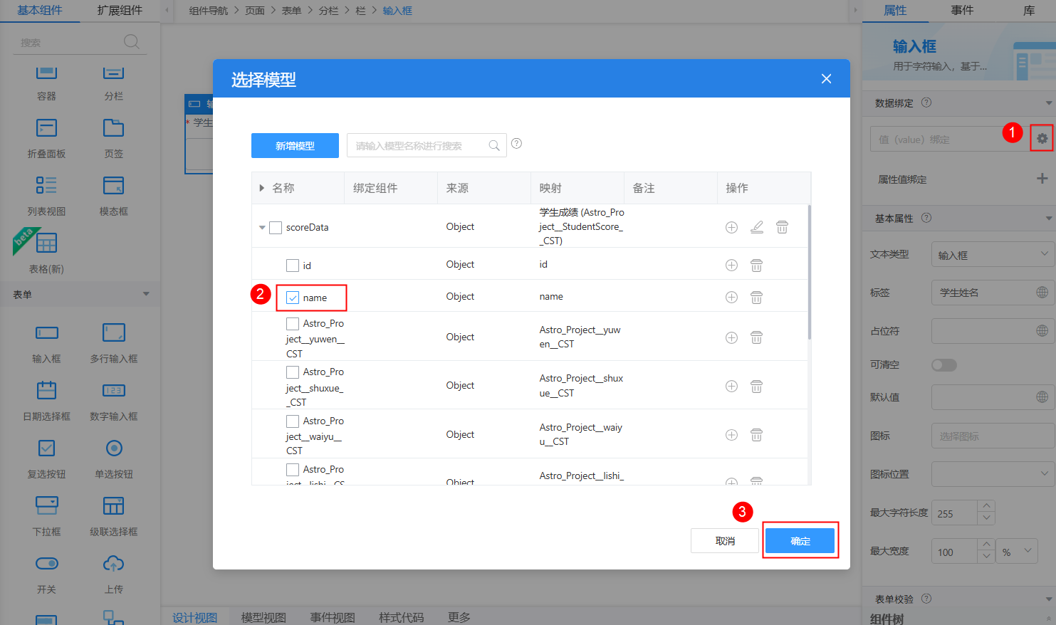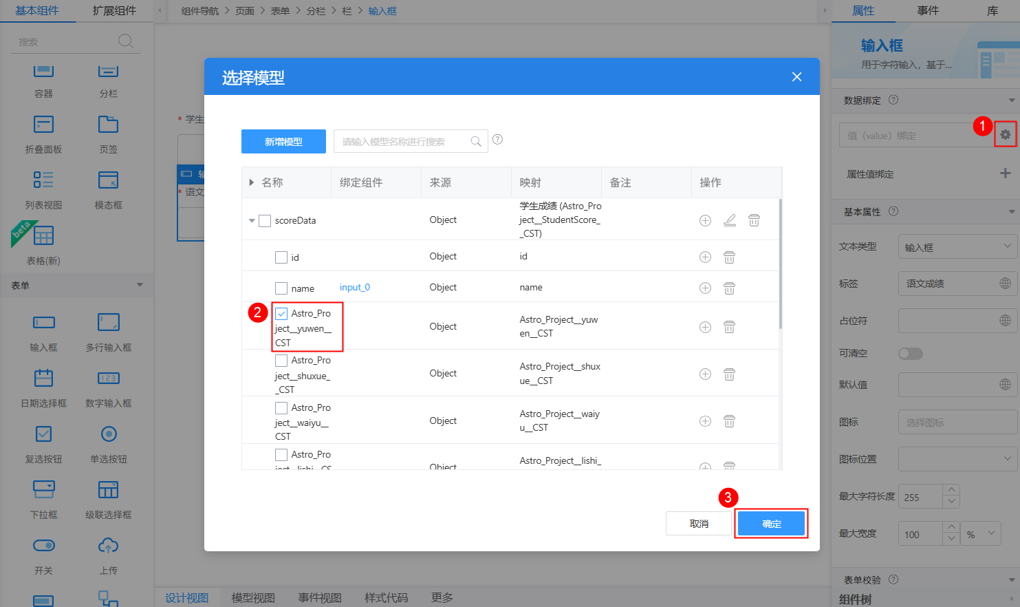 语文成绩与数据模型中Astro_Project_yuwen_CST绑定: