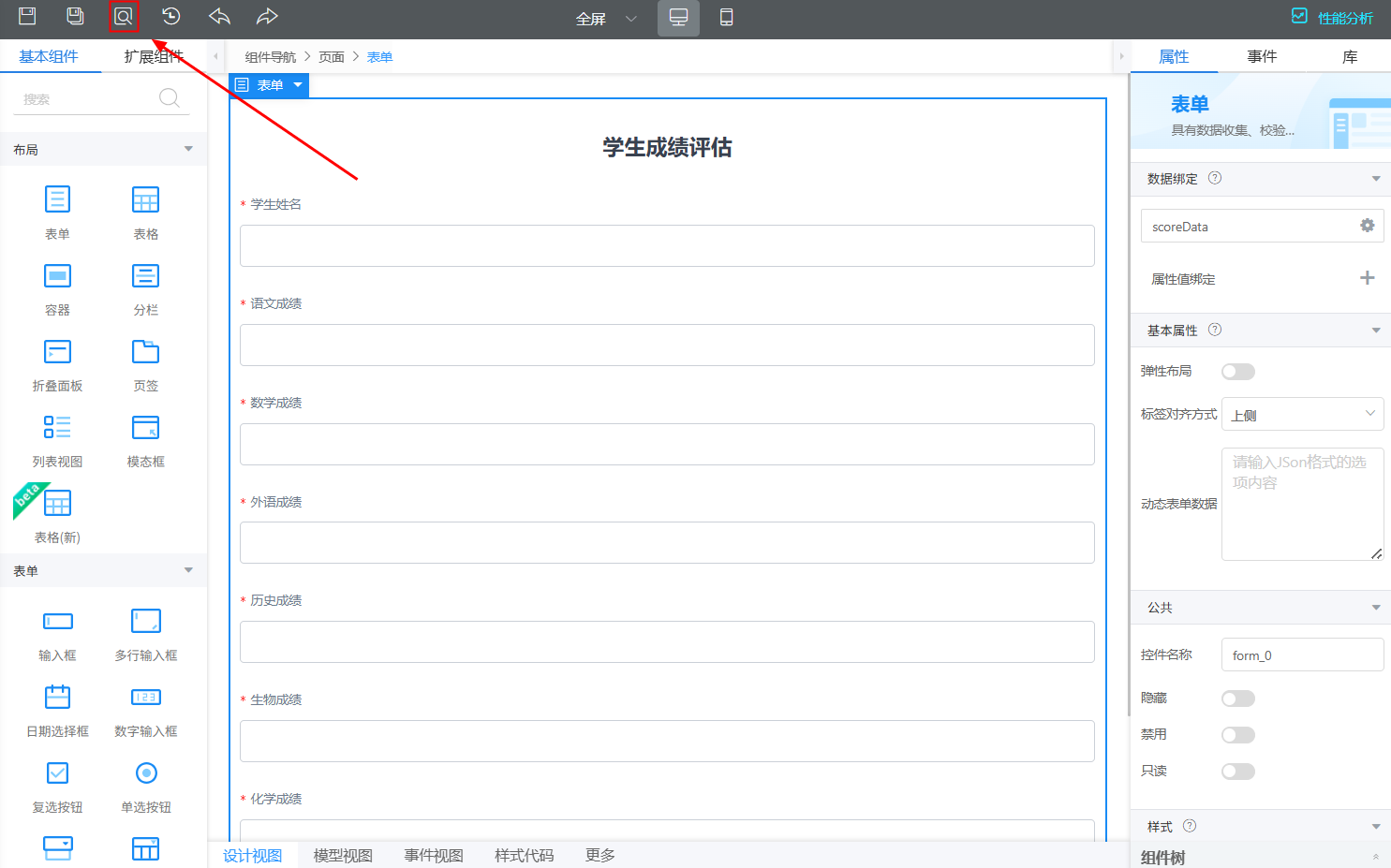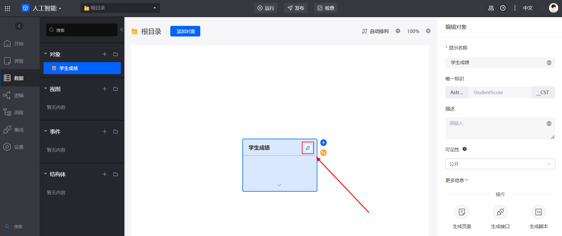 点击确定后,点击以下图标,对学生成绩对象进行编辑: