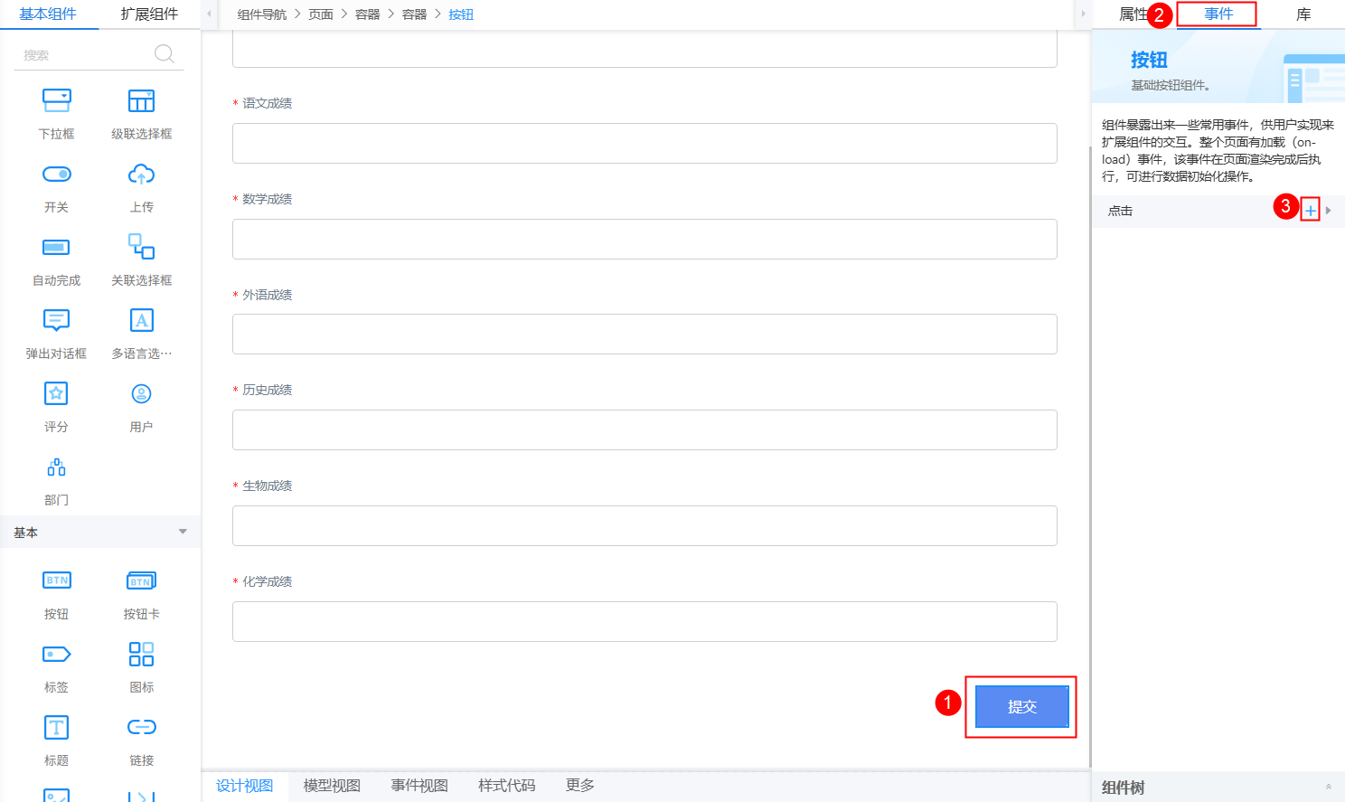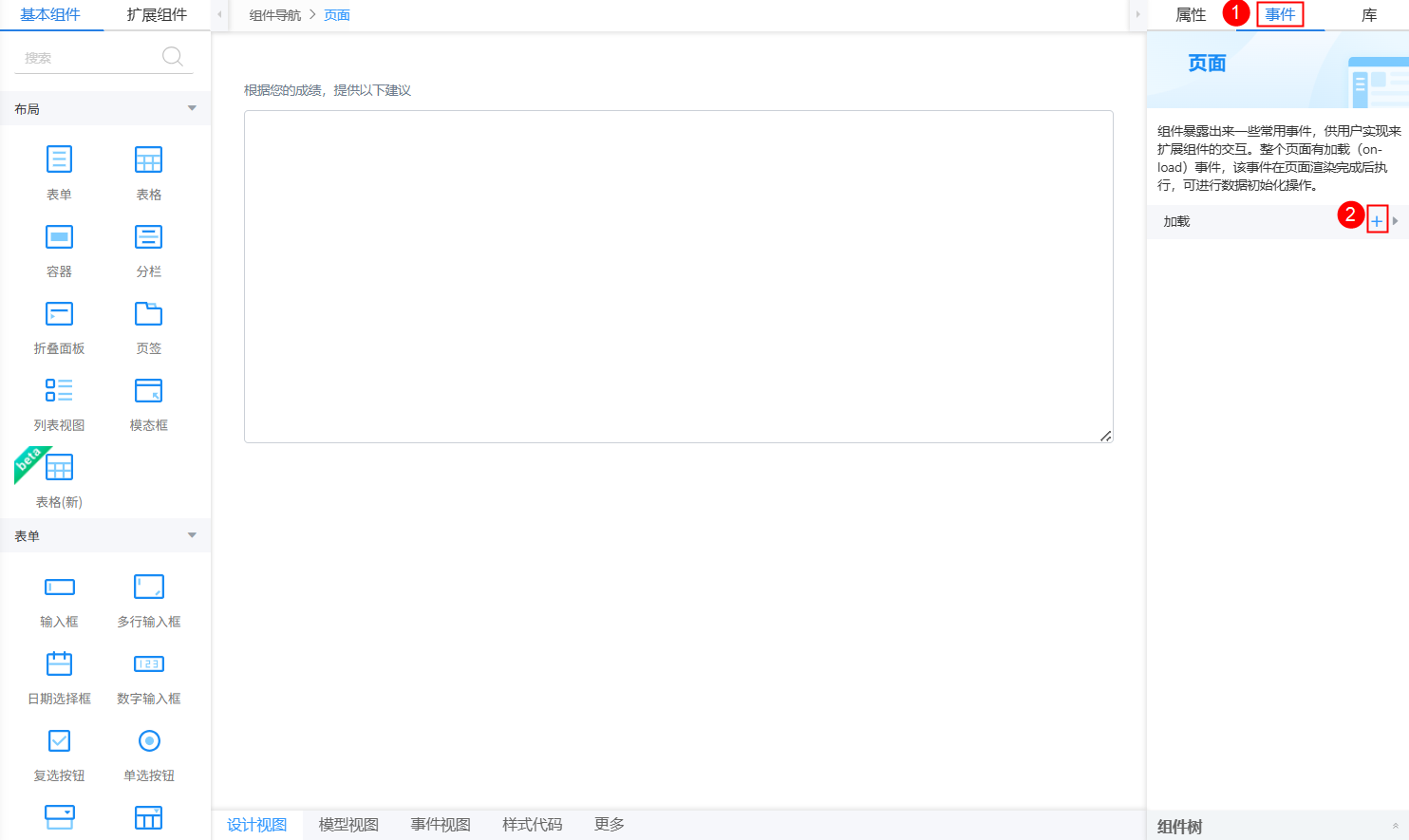 点击事件->加载旁边的**“+”**,添加事件绑定。