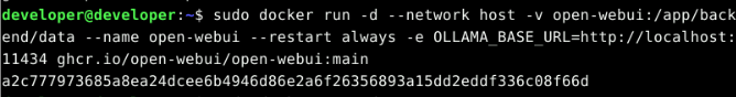 sudo docker run -d --network host -v open-webui:/app/backend/data --name open-webui --restart always -e OLLAMA_BASE_URL=http://localhost:11434 ghcr.io/open-webui/open-webui:main