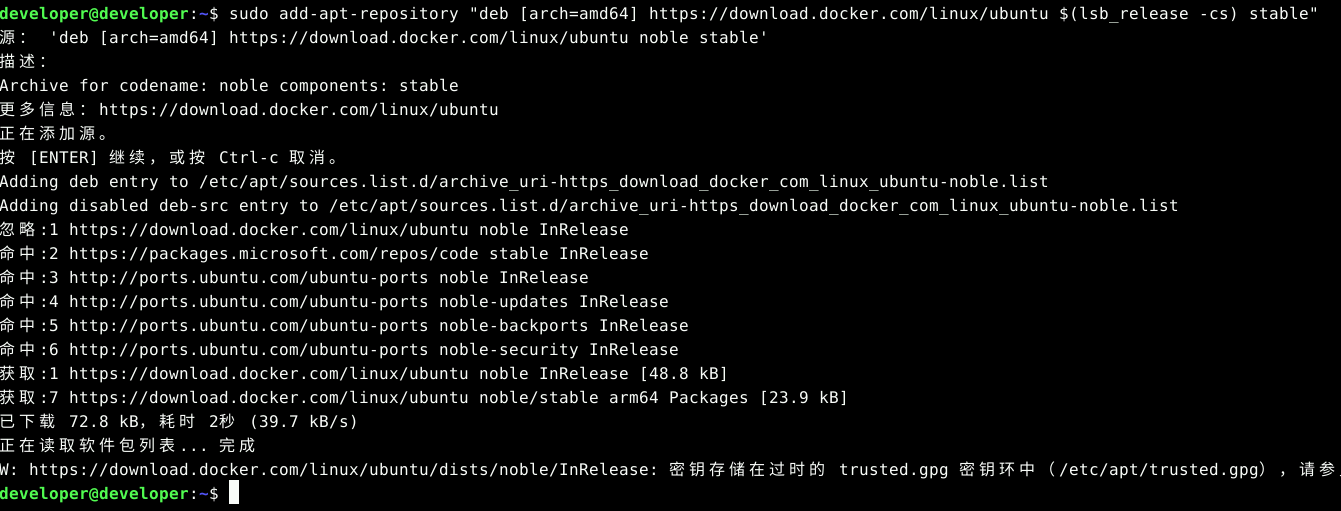添加Docker的官方GPG密钥。(如果云主机已安装dokcer,且操作上一步卸载再安装,执行该步骤第一次会报找不到OpenPGP,须再次执行)
