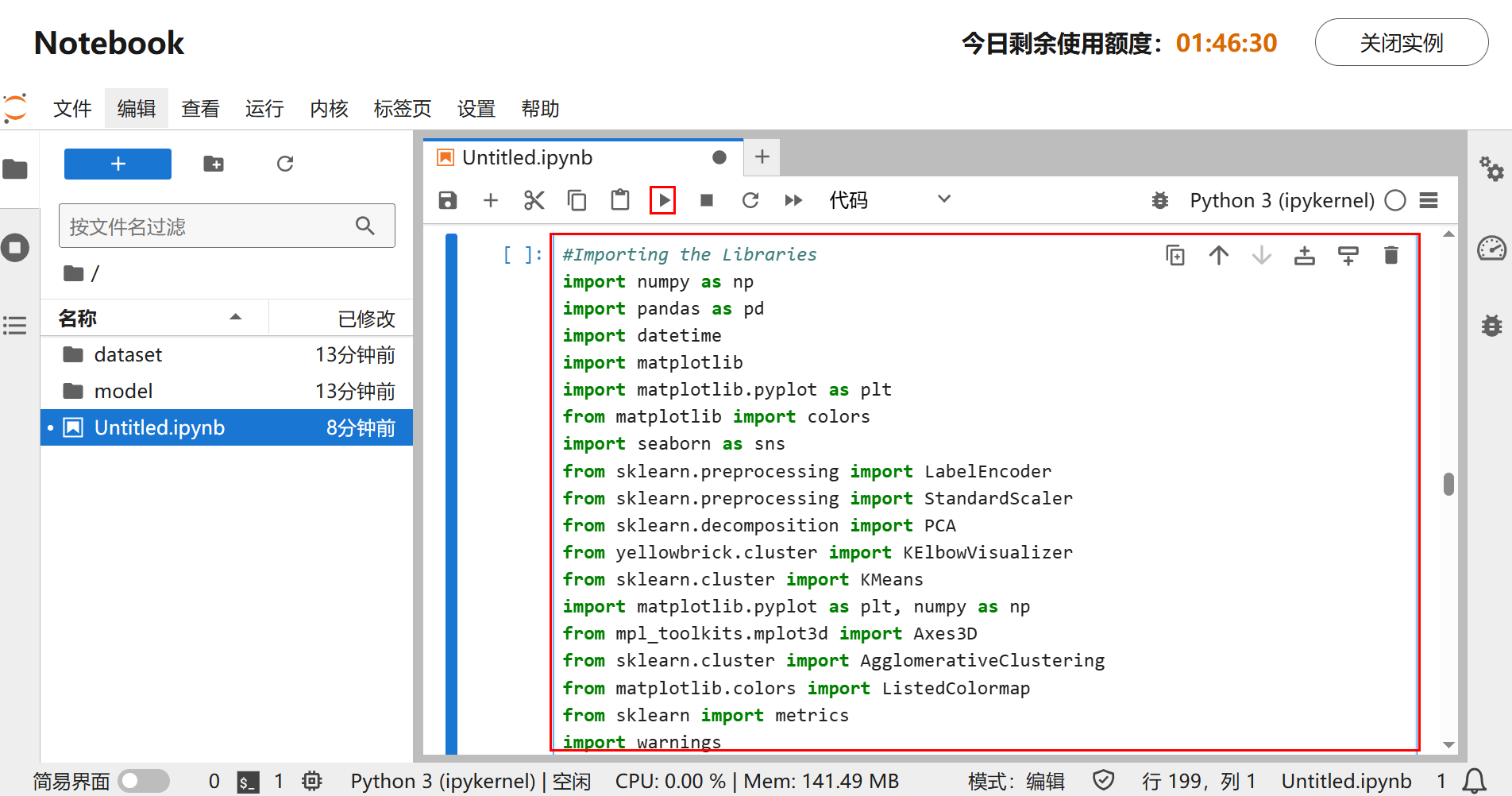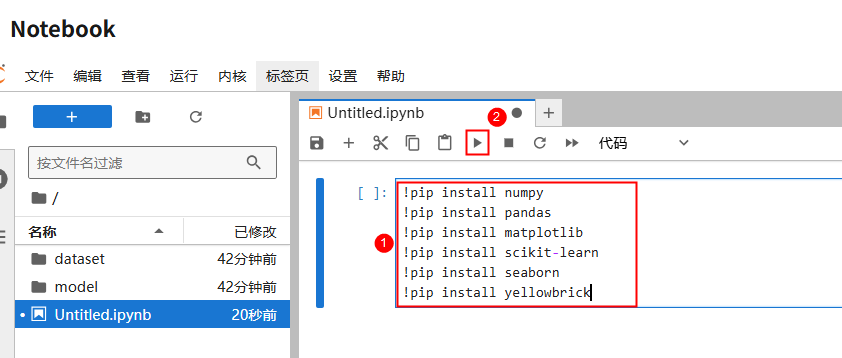 在Notebook的新执行框中输入如下代码并运行,安装所有依赖库。