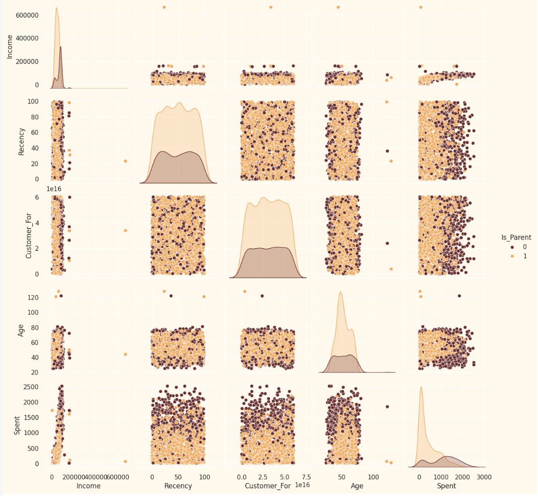 To_Plot = [ "Income", "Recency", "Customer_For", "Age", "Spent", "Is_Parent"]