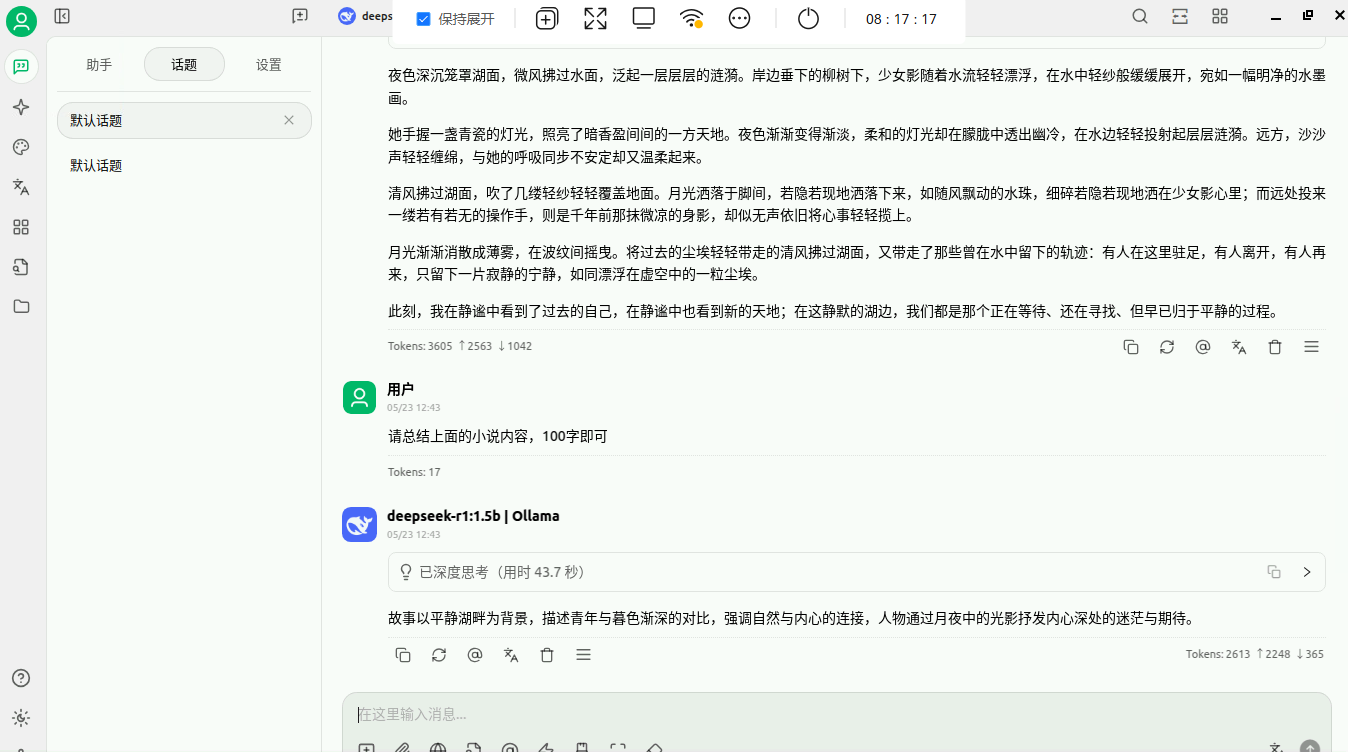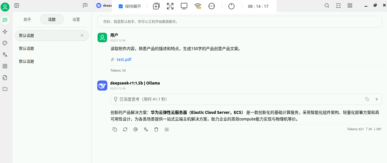 接着我们向 deepseek 提问,测试模型是否可以正常工作。