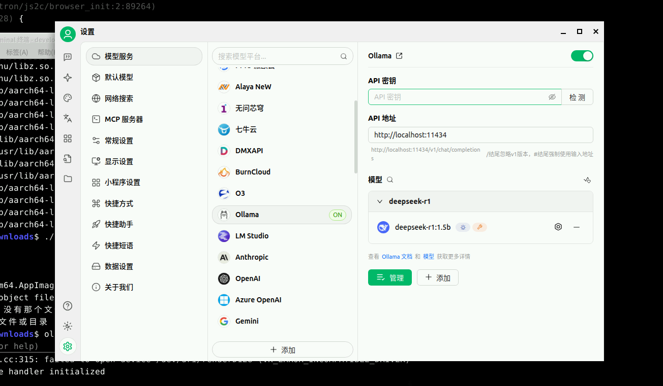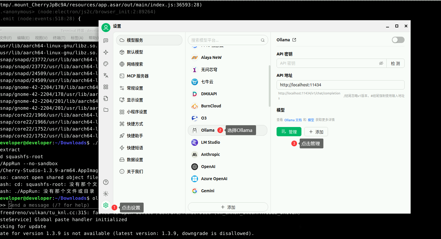打开 Cherry Studio → “设置” → “模型服务” → Ollama → “管理”