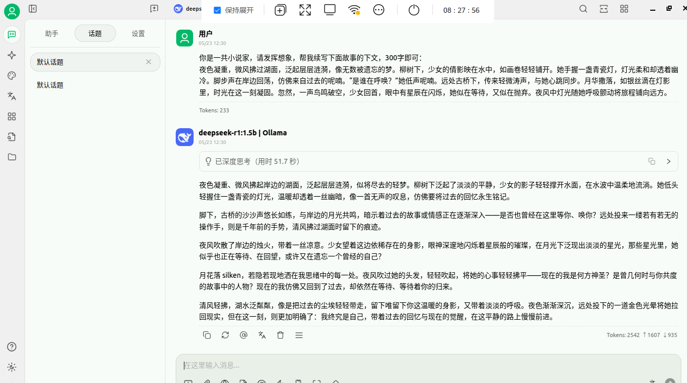 可以看到,DeepSeek 成功续写了约300字的小说内容。