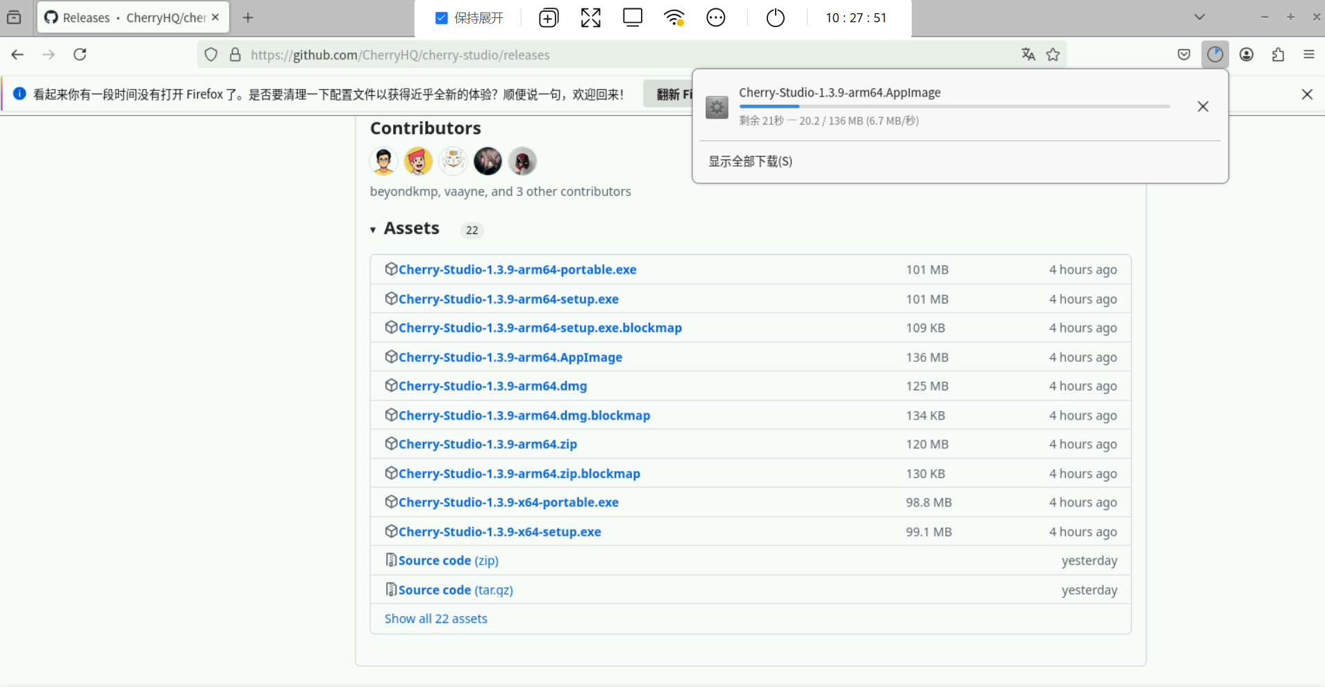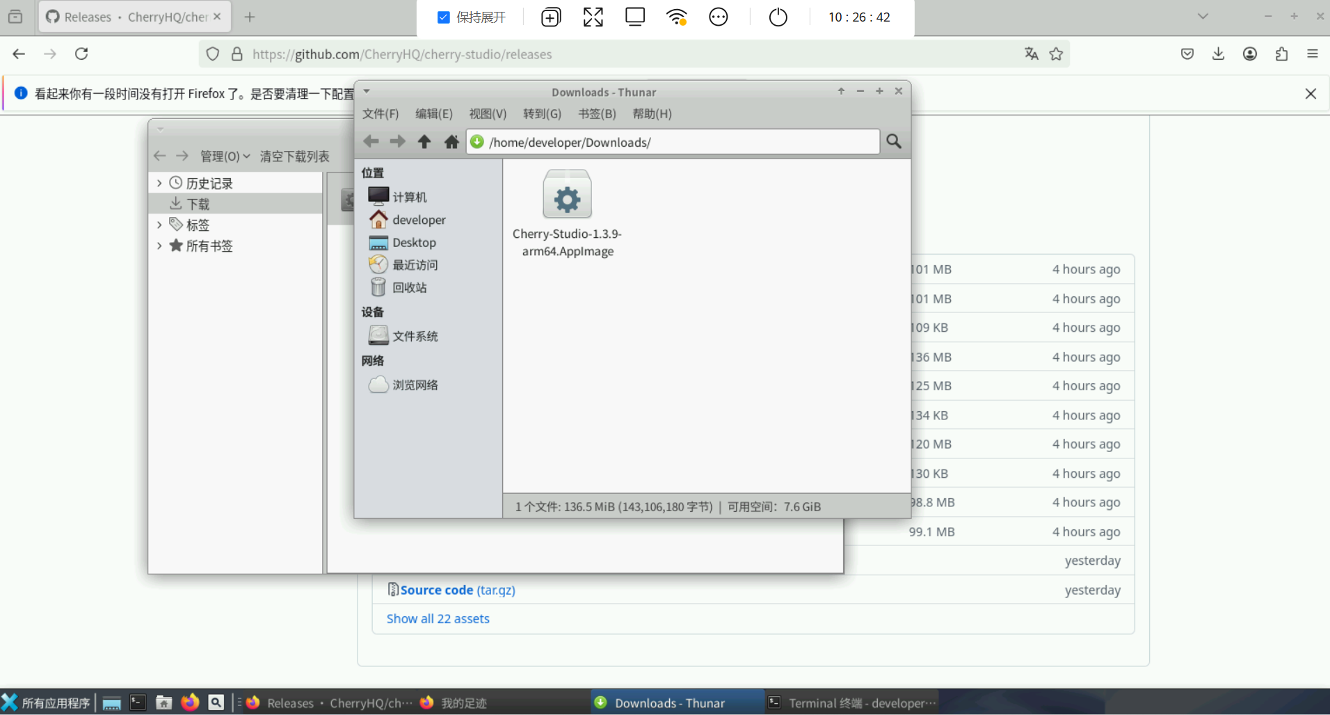 注:从Cherry Studio Releases下载 ARM64 AppImage:(如果是X86云主机,请选择性x86_64版本),版本:Cherry-Studio-1.3.9-arm64.AppImage或更新的版本,自行选择。