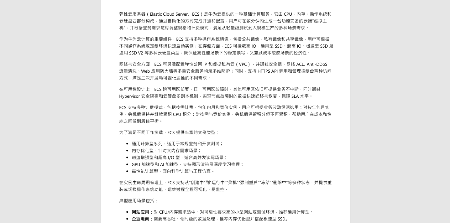 我们需要准备一个某产品介绍的文档,如果没有可以去网上下载一个,这里作为演示的是我事先准备的华为云ECS产品说明文档。下载链接: test.pdf