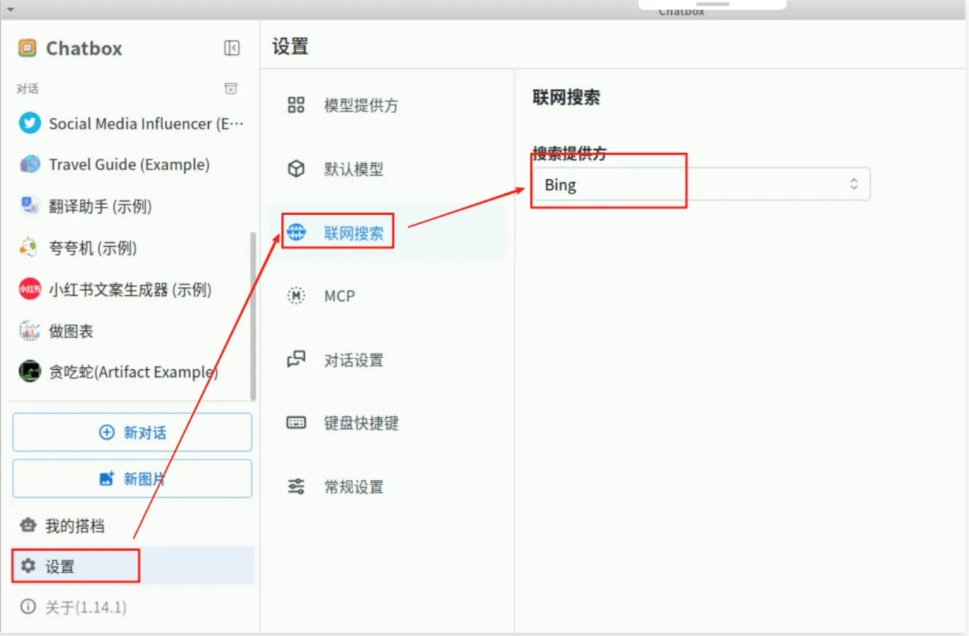 点击左下角【设置】-【联网搜索】,将搜索提供方修改为Bing,就可以无限制使用了。