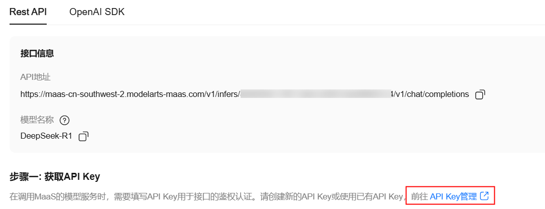 至此,我们获取到了所需的 API 地址、模型名称和 API 密钥。
