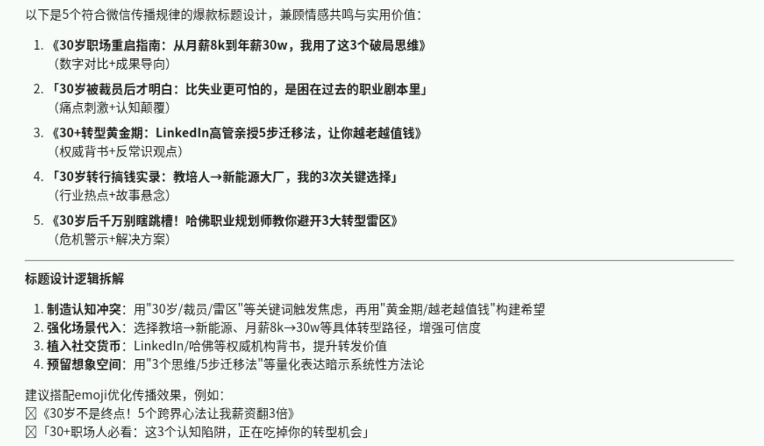 继续。prompt:按照这个思路,生成5个吸引⼈的标题。