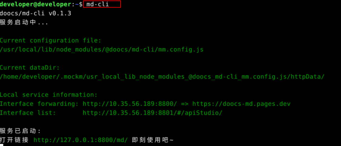 启动 ``` md-cli ```