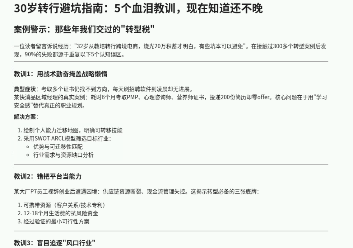 prompt:以<30岁转行避坑指南:5个血泪教训,现在知道还不晚>为标题,写一篇1200字左右的微信公众号文章。