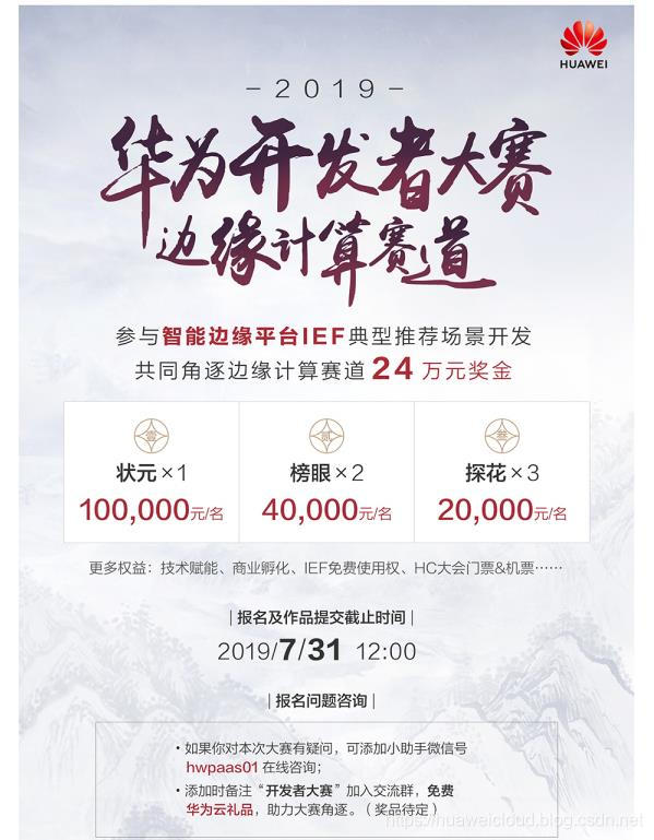 华为开发者大赛云计算正式招募,参与智能边缘平台IEF典型推荐场景开发,共同角逐边缘计算赛道24万元奖金,更有技术赋能、商业孵化、HC大会门票+机票等多项免费权益!