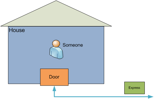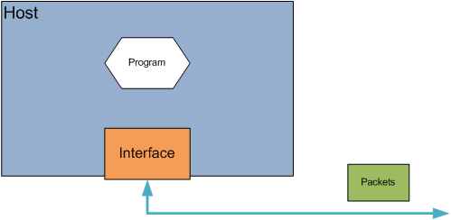 意思是:主机Host上面运行了程序,这个程序从网卡接收/发送报文。你就想象一个人在一个四四方方的空房子里面,其中的一面墙上有个门,门口那个快递收发员会把包裹从外面运进来。